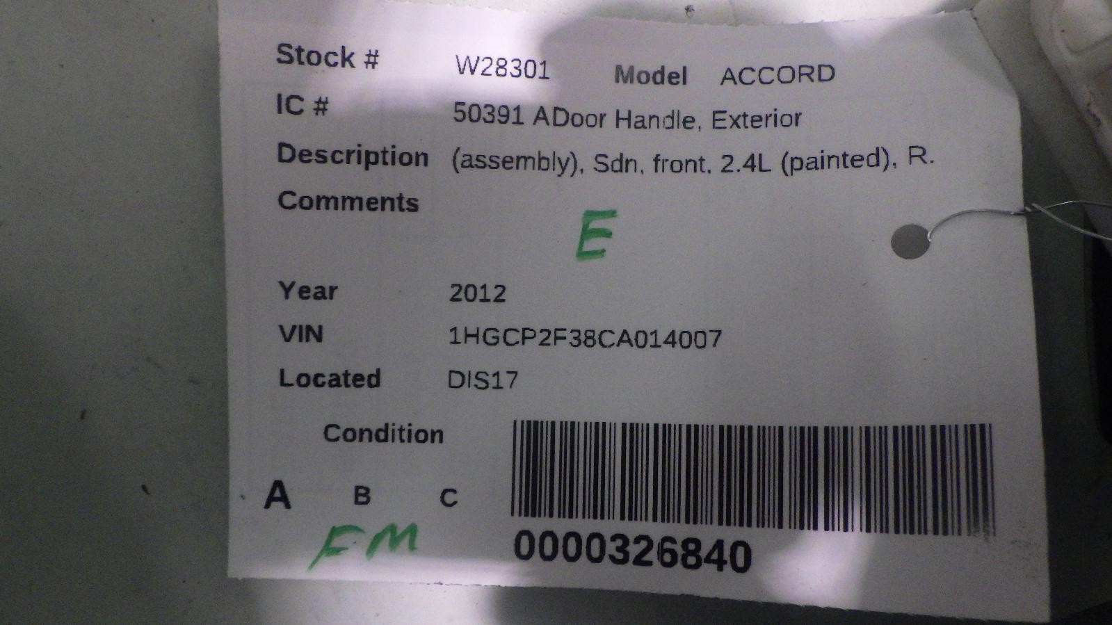 12 HONDA ACCORD RIGHT FRONT Door Handle