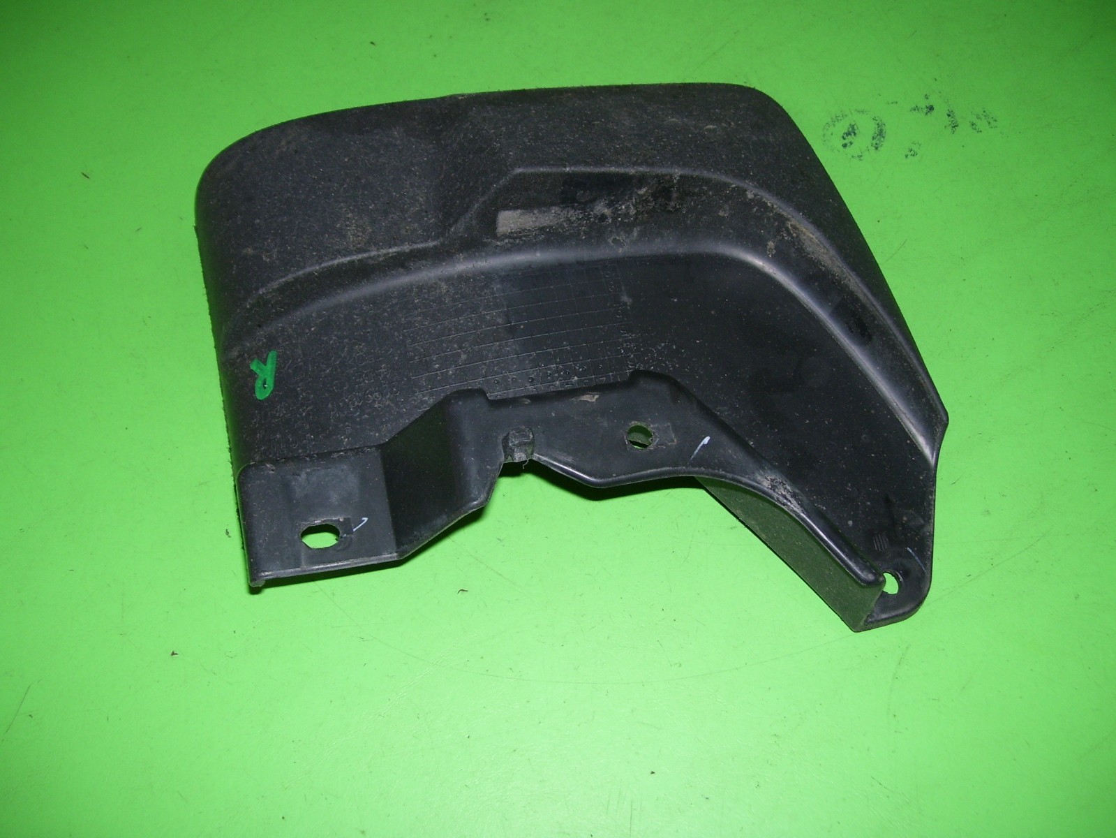 GR-01(T-02) Passenger side, rear, factory splash shield (deflector) removed from a 2014 Chevrolet Silverado. Part Number: 22991830 This fits in FRONT of the passenger side rear wheel. Used, but in good shape.