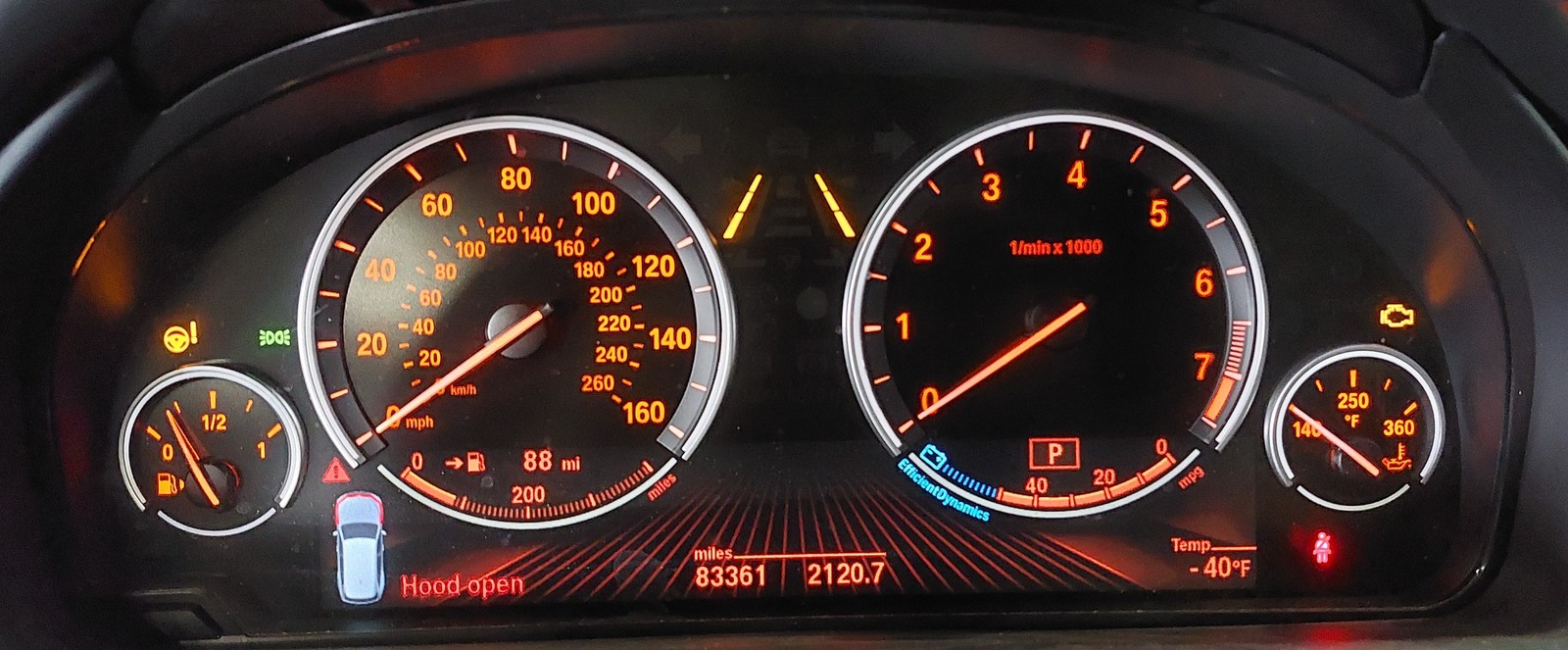 14-18 BMW X5 (F15) ANALOG SPEEDOMETER WITH SCREEN BELOW GUAGES (GAS MPH) (83k)