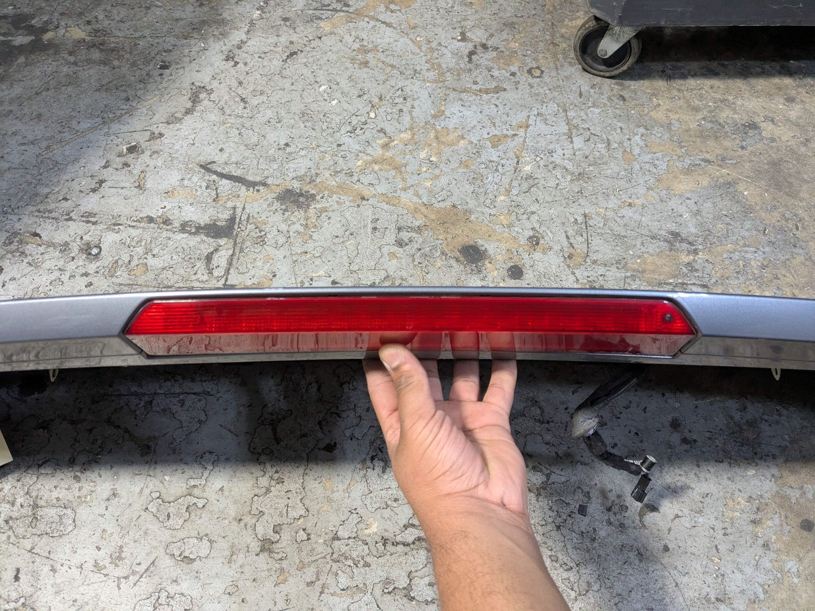 ## 14-18 OEM BMW F15 X5 Rear Door Liftagte Spoiler Wing Molding Brake Light Panel - SKU: **47600** - Brand: **BMW** - Condition: **Used** - Notes: **INTACT! All Tabs Good! Color: sophisto-grau brillant metallic!** - MPN: **7294468** - Manufacturer Part Number: **51627294468** - OE/OEM Part Number: **7294468** **We're on Instagram! Follow us! oe\_mgarage** **All parts are used unless otherwise noted! Please understand that being that parts are used there may be some wear and tear & scratches etc. We cannot guarantee the condition of paint & or that paint color will be an exact match as yours. We try to show as much of the condition as possible through photos and notes!** **Original Car:** 2014 BMW X5 **Series:** F15 **Vin Number:** 5UXKR0C59E0H28477 **Mileage:** 237194 **Engine:** N55B30M0 **Transmission:** 1 **Part number:** 7294468, 51627294468 **Exterior Color Paint Code:** SPACEGRAU METALLIC (A52) **SKU:** 47600 **Location:** 13up **Notes:** INTACT! All Tabs Good! Color: sophisto-grau brillant metallic! **30 DAY WARRANTY!!** Warranty covers the cost of the item! It does not cover shipping or labor! Used condition items may have minor imperfections. Please look at pictures for details! And understand that this is a USED part after all! Compatibility is the responsibility of the customer to ensure!! Please feel free to reach out with any questions!! [