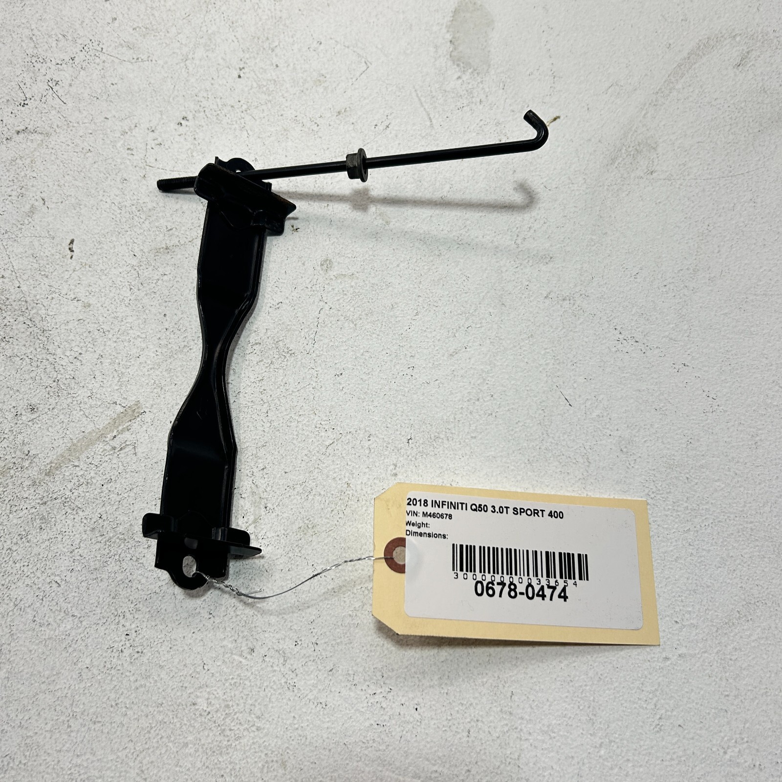 **14-2020 INFINITI Q50 Q60 SECURE BATTERY TIE DOWN BRACKET CLAMP MOUNT HOLDER OEM** YearMakeModelBody & TrimEngine & Transmission2020InfinitiQ50Edition 30, Luxe, Pure, Red Sport, Sport3.0L V6 - Gas2020InfinitiQ60Luxe, Pure, Red Sport3.0L V6 - Gas2019InfinitiQ50Luxe, Pure, Red Sport, Sport2.0L L4 - Gas, 3.0L V6 - Gas2019InfinitiQ60Luxe, Pure, Red Sport3.0L V6 - Gas2018InfinitiQ50Luxe, Pure, Red Sport, Sport2.0L L4 - Gas, 3.0L V6 - Gas2018InfinitiQ60Luxe, Pure, Red Sport, Sport2.0L L4 - Gas, 3.0L V6 - Gas2017InfinitiQ50Base, Premium, Red Sport, Sport2.0L L4 - Gas, 3.0L V6 - Gas2017InfinitiQ60Base, Premium, Red Sport, Sport2.0L L4 - Gas, 3.0L V6 - Gas2017InfinitiQX50Base3.7L V6 - Gas2017InfinitiQX70Base3.7L V6 - Gas2016InfinitiQ50Base, Premium, Red Sport, Sport2.0L L4 - Gas, 3.0L V6 - Gas2016InfinitiQX50Base3.7L V6 - Gas2016InfinitiQX70Base3.7L V6 - Gas2015InfinitiQ40Base3.7L V6 - Gas2015InfinitiQ50Base, Premium, Sport3.7L V6 - Gas2015InfinitiQ60Base, IPL, Journey, S, S Limited3.7L V6 - Gas2015InfinitiQX50Base, Journey3.7L V6 - Gas2015InfinitiQX70Base3.7L V6 - Gas2014InfinitiQ50Base, Premium, Sport3.7L V6 - Gas2014InfinitiQ60Base, IPL, Journey, S3.7L V6 - Gas2014InfinitiQX50Base, Journey3.7L V6 - Gas2014InfinitiQX70Base3.7L V6 - Gas, 5.0L V8 - Gas2013InfinitiEX37Base, Journey3.7L V6 - Gas2013InfinitiFX37Base3.7L V6 - Gas2013InfinitiFX50Base5.0L V8 - Gas2013InfinitiG37Base, IPL, Journey, Sport, X3.7L V6 - Gas2012InfinitiEX35Base, Journey3.5L V6 - Gas2012InfinitiFX35Base3.5L V6 - Gas2012InfinitiFX50Base5.0L V8 - Gas2012InfinitiG25Base, Journey, X2.5L V6 - Gas2012InfinitiG37Base, IPL, Journey, Sport, X3.7L V6 - Gas2011InfinitiEX35Base, Journey3.5L V6 - Gas2011InfinitiFX35Base3.5L V6 - Gas2011InfinitiFX50Base5.0L V8 - Gas2011InfinitiG25Base, Journey, X2.5L V6 - Gas2011InfinitiG37Base, IPL, Journey, Sport, X3.7L V6 - Gas2010InfinitiEX35Base, Journey3.5L V6 - Gas2010InfinitiFX35Base3.5L V6 - Gas2010InfinitiFX50Base5.0L V8 - Gas2010InfinitiG37Base, Journey, Sport, X3.7L V6 - Gas2010InfinitiM35Base, X3.5L V6 - Gas2010InfinitiM45Base, X4.5L V8 - Gas2009InfinitiEX35Base, Journey3.5L V6 - Gas2009InfinitiFX35Base3.5L V6 - Gas2009InfinitiFX50Base5.0L V8 - Gas2009InfinitiG37Base, Journey, Sport, X3.7L V6 - Gas2009InfinitiM35Base, X3.5L V6 - Gas2009InfinitiM45Base, X4.5L V8 - Gas2008InfinitiEX35Base, Journey3.5L V6 - Gas2008InfinitiG35Base, Journey, Sport, X3.5L V6 - Gas2008InfinitiG37Base, Journey, Sport3.7L V6 - Gas2008InfinitiM35Base, X3.5L V6 - Gas2008InfinitiM45Base, X4.5L V8 - Gas2007InfinitiG35Base, Journey, Sport, X3.5L V6 - Gas2007InfinitiM35Base, Sport, X3.5L V6 - Gas2007InfinitiM45Base, Sport4.5L V8 - Gas2006InfinitiG35Base, X3.5L V6 - Gas2006InfinitiM35Base, Sport, X3.5L V6 - Gas2006InfinitiM45Base, Sport4.5L V8 - Gas2005InfinitiG35Base, X3.5L V6 - Gas2004InfinitiG35Base, X3.5L V6 - Gas2003InfinitiFX35Base3.5L V6 - Gas2003InfinitiFX45Base4.5L V8 - Gas2003InfinitiG35Base3.5L V6 - Gas Please, we provide detailed pictures and donor vehicle information for good reasons, make sure this part will work for your vehicle, research and ask questions before ordering, it can be difficult for us to pinpoint exact fit for all used parts that we sell, no refunds will be given for incorrectly ordered part, we still guarantee quality and functionality of every used part offered. Thank you very much!!! All parts advertised have already been removed from used/salvage vehicles and already on the shelf ready for shipments. Various gaskets, seals, sealing rings, clamps, clips, brackets and other fasteners may often remain on parts. They are of ONE-TIME USE and very often get damaged when the part is removed. Such components must be purchased ONLY NEW and are not included into the kit! In other words, they may be present on the parts but require mandatory replacement with the NEW ones. Do not think that they can be reused during installation. We are not responsible for installing parts without replacing them with the new ones. **You will** **only receive what is pictured unless otherwise stated in the description.** **Please do not assume anything else will be included if it is not pictured.** All of the parts we sell are guaranteed to be in good working condition unless otherwise noted. Our photos provide an accurate representation of the listed product. Products sold in quantities will show a single image representing the others in equal or greater condition. We ONLY guarantee the part(s) will fit the vehicle(s) listed in the description. If your vehicle was not originally equipped with the EXACT part(s) listed, it is your responsibility to consult a dealer to see if it will fit your application. Additional items may be needed if this is an upgrade or custom installation. Please consult your local dealer for ALL other applications. **Warranty:** All engines/transmissions/transfer cases/differentials come with 30-day warranty for PARTS replacement only, no labor costs reimbursements. **Payment:** We accept PayPal, credit card over the phone and cash in person. We require items to be paid for within 5 business days otherwise we reserve the right to cancel the sale and relist the item. **Shipping:** Free shipping applies only to shipments to the lower 48 states. Purchases over $300 will be shipped with signature confirmation for delivery please take a note and make sure someone is available to sign for the package. **We don’t ship by USPS Services!** Expedited shipping available, contact us directly for details. Oversized items are shipped by freight truck. SHIPPING ONLY TO BUSINESS LOCATION! The shipping company need: 1) first and last name 2) Company name 3) Phone number If FREE shipping is being advertised for oversized item it is assumed to be shipped from commercial location with dock or forklift to another commercial location with dock or forklift. Other locations will incur a lift gate and other residential delivery fees imposed by freight companies. Buyer is responsible for providing correct address, Imperi