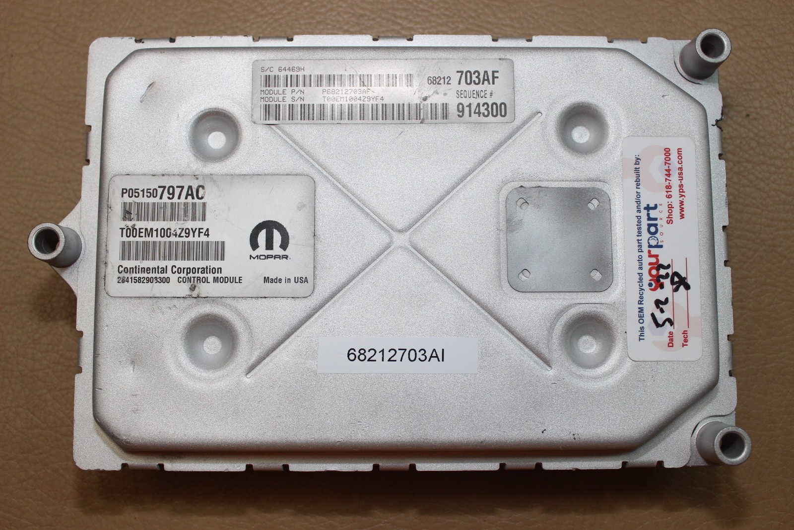 [ -  -  -  -  # TESTED 14 DODGE CHARGER 5.7L AT ECU ECM PCM ENGINE CONTROL COMPUTER 68212703AI ### Part Number 68212703AI ECU has SKIM security and requires programming before installation. We offer FREE programming, see details below! ### Fitment/Interchange This ecu will interchange or replace the following part numbers: 68212703AA 68212703AB 68212703AC 68212703AD 68212703AE 68212703AF 68212703AG 68212703AH 68212703AI P68212703AI R8212703AI 68212703 ### Tech Notes ECU has been tested with our state of the art vehicle simulator which tests over 25 circuits of the ECU! Some of those are listed below: - Reference Voltage Good! - ECU powered up and has communication! - ECU fuel pump/main relay test good! - ECU injectors/coils test good and much more! ### Install Notes - Disconnect the negative terminal of the battery. Make sure the battery connector is not touching the battery post. - Disconnect and remove the module to be replaced. - Install and connect the replacement module. - Connect the negative terminal of the battery. - See "Programming" below for additional install instructions. ### Programming For Plug and Play you must follow the below three steps: Step 1: Match your part number series per above fitment guide Step 2: Match your ecu security. Most GPCII style ecu's have SKIM security and are not plug and play. Step 3: Program ecu to your VIN and mileage. We provide free programming for our customers. During checkout you must list your VIN and mileage in the "Notes to Seller" for us to program the ECM. ### Item Condition - Mounting points are all open and intact - Pins perfect, none are broken or bent - There may be some minor chipped plastic on connector but lock tabs are place ### Warranty / Optional Core Return This ECM comes with a 90 day warranty from the date of purchase. Please keep a copy of your purchase record which we will send with your item. If you would like to return your core for a $25 partial refund let us know during checkout through the "notes to seller" and we will send a prepaid return label with your order. It's that simple. Once your original item comes in we will process your refund promptly. - About Us - customer service - shipping - returns - feedback - International Buyers About Us Your Part Source specializes in providing recycled oem auto parts and quality remanufactured auto parts! Serving our clients since 2008 our seasoned staff of electronic repair techs provides affordable alternatives to the high cost of new car parts. Purchasing a recycled auto part or a remanufactured part is also a great way to go green and help the environment. Choosing one of our reliable remanufactured parts also prevents our buyers from trudging through their local junk yard only to install a part that no longer works, ugh! A growing Midwestern company, we pride ourselves on quality workmanship and superior customer service! Give us a try today! customer service Our goal is to provide the best customer service possible! We have a guaranteed 24 hour response time to emails received 7 days a week 365 days a year! If you have a question don't hesitate to email us! We are here to serve you! When emailing us please be as detailed as possible regarding any issues you encounter with a listing or part that has been purchased. Knowing trouble codes, symptoms, parts numbers etc etc will help our seasoned staff resolve any issues as quickly as possible so we can help get your vehicle up and running! If you are enquiring about a part to purchase feel free to attach photos of items or part number stickers! We will do what we can to get you the part you need! Every part is professionally pre-wrapped for protection before being boxed! We then use premium fill and boxes plus foam or bubble-wrap if necessary all to make sure you receive your part undamaged! returns If you encounter a problem with a part you have purchased from us within the warranty period we of course will work with you on a repair, replacement or possibly a refund if you are within the return period. This will help our staff work with you on a quick resolution! We know purchasing parts for your vehicle can be confusing and frustrating. In the event you purchased the wrong part which will happen from time to time simply open a return request choosing ""item doesn't fit"" and we will work with you on a return. It's that simple! International Buyers We would love to earn your business and provide a superior product and great customer service! After receiving your item if you are happy with your purchase we would love your positive feedback and a 5 star rating! We are committed to providing our buyers a great buying experience. Give us a shot on your next recycled auto parts purchase. We think you will be glad you did! feedback We are happy to ship our parts worldwide! If you see an item you would like to purchase but for some reason our listing says you are not eligible to purchase the item please message us and we will make the necessary adjustment!