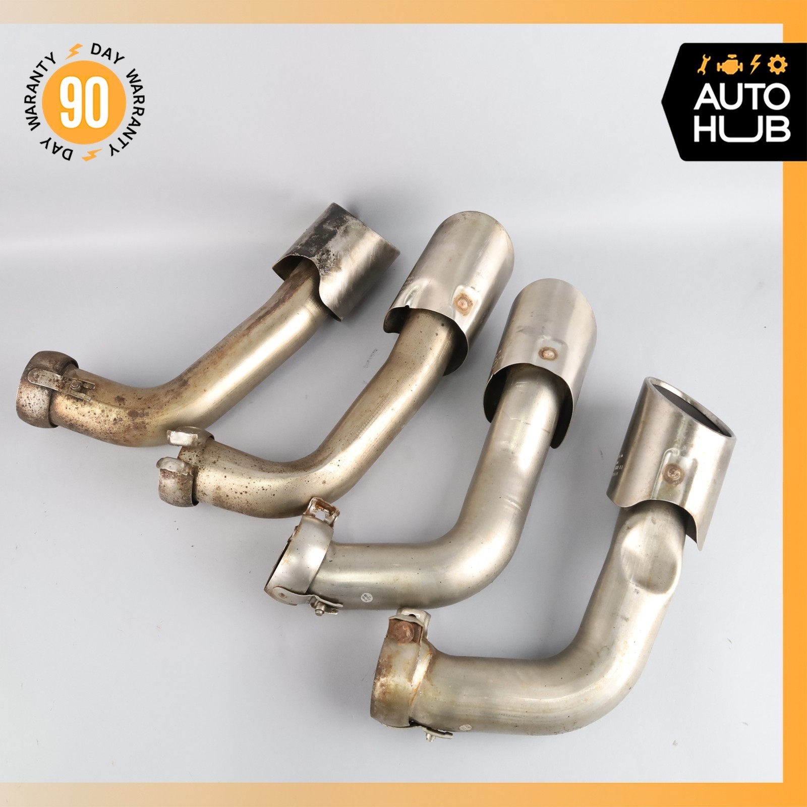 ## 15-18 Porsche Cayenne 958 ## Exhaust Dual Muffler Tips Set ## 7P5253682AL / 7P5253681AL OEM Original Porsche Parts. There are bents, photo #4, #17. Please check photos for cosmetic condition of the items. Make sure to match the part number. ### PLEASE READ BELOW: ###### When you buy our item you agree to our terms and conditions ### Item Condition: Good / Normal Use / As shown in the photos / It is buyer's responsibility to carefully inspect all of the photos for details and/or request more photos if necessary. - PLEASE VERIFY THE COMPATIBILITY BEFORE BUYING OR **SEND US YOUR VIN NUMBER AND WE WILL ASSIST YOU****.** - IT IS THE BUYER'S RESPONSIBILITY TO DETERMINE WHETHER THE PART WILL FIT HIS/HER CAR. - PLEASE MAKE SURE TO MATCH THE PART NUMBER WITH YOUR ORIGINAL PART. - WHAT YOU SEE IN THE PHOTOS IS WHAT YOU WILL RECEIVE. ### Shipping Policies: - You are welcome to pick up your item at our location. - Ground shipping rates apply to the continental United States. International shipping rates apply everywhere outside of the continental US. - When shipping internationally, parcels may be subject to Import Tax and Duty Charges, for which the buyer is responsible. - Any international customs fees must be paid by buyer. - International orders will be shipped via USPS or FedEx International. Shipping cost or carrier may change, based on final destination. - Puerto Rico, Virgin Islands, Hawaii and Alaska **will require additional shipping charge.** - Most small items purchased **before 2:00pm (14:00) PST will be shipped the same day.** With the exception of items requiring special packaging.Orders processed **after 2:00pm PST will be shipped the same or the following day.** - Processing time for larger sized items is 1 business day. Large items include: hood, door shell, fender, engine, transmission, trunk shell, hatch, windshield, bumper, reinforcement clip, subframe, roof, quarter apron, gas tank, etc. - Large items can only be shipped to a business/commercial address via Freight Shipping. - Freight Shipping companies require the customer to unload the shipment. If you are not able to unload your shipment, the shipping company will charge for unloading on your behalf. - To pass our shipping savings on to you, we may alternate between FedEx, USPS depending on which is most affordable and/or faster. ### Return Policy: - All returns must be made and will be accepted within 30 days of the item being received by the customer. Items eligible for return are non-functional or items that differ substantially from the description. Please, do not purchase parts just to check and diagnose your vehicle’s problem. - **We are not liable for any labor fees associated with the installation or removal of any parts we sell.** ### Warranty: - We offer a 90 DAY WARRANTY on all of our parts. - All of the parts are tested either before or after removal from the vehicle. - Before purchasing an item, the customer **MUST** verify that the item will fit his/her vehicle. - Item may show light scuffs, scratches or other imperfections as a result of this **being a used part.** ### Contact us: - If you have a question about any part please contact us before purchasing. ### Important! Once you have received your item in satisfactory condition, please leave us feedback. If there is a concern or issue that would cause you to want to leave negative feedback, please contact us first and we will do our best to resolve the problem and satisfy the situation. Thank You