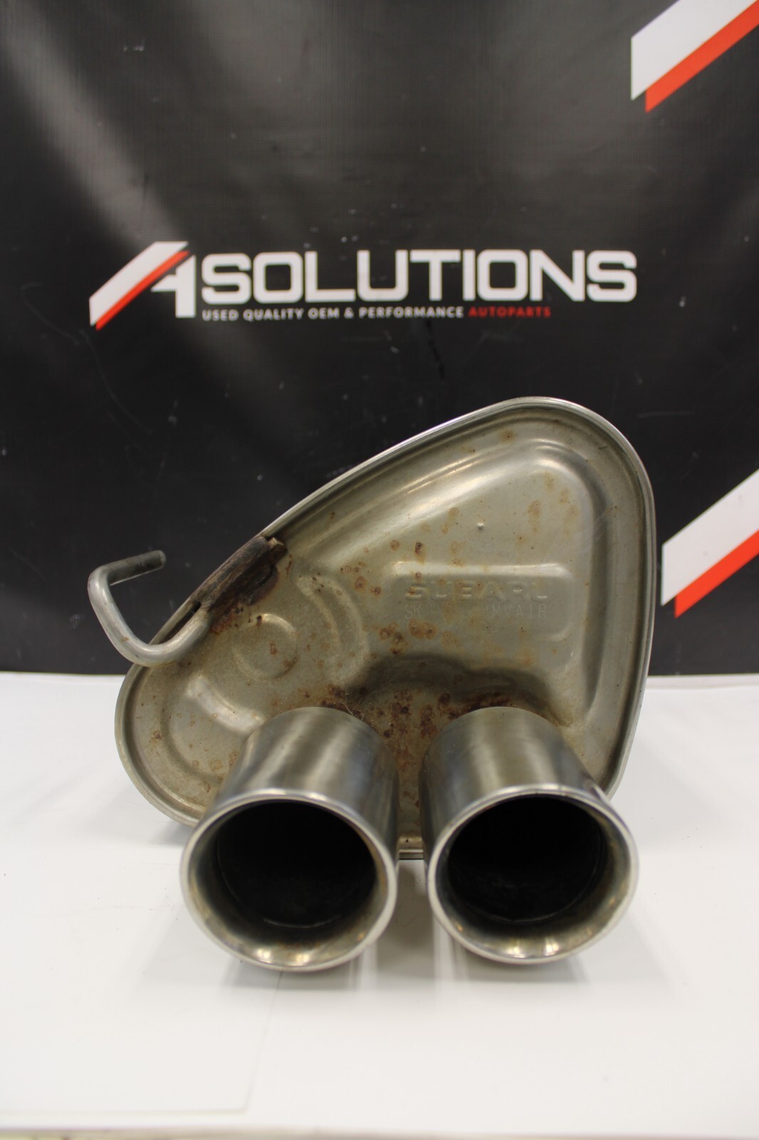 Used OEM right side exhaust muffler off of a 2015 Subaru WRX Condition as seen in pics Actual item pictured PLEASE LOOK AT PHOTOS CLOSELY 100% Satisfaction Guaranteed!! Check fitment before purchase SOLD AS IS Email us for more info A Solutions Auto Parts Local Pickup preferred!!! THEY ARE USED AUTO PARTS PLEASE INSPECT THEM. THEY HAVE NORMAL REGULAR EVERYDAY WEAR.