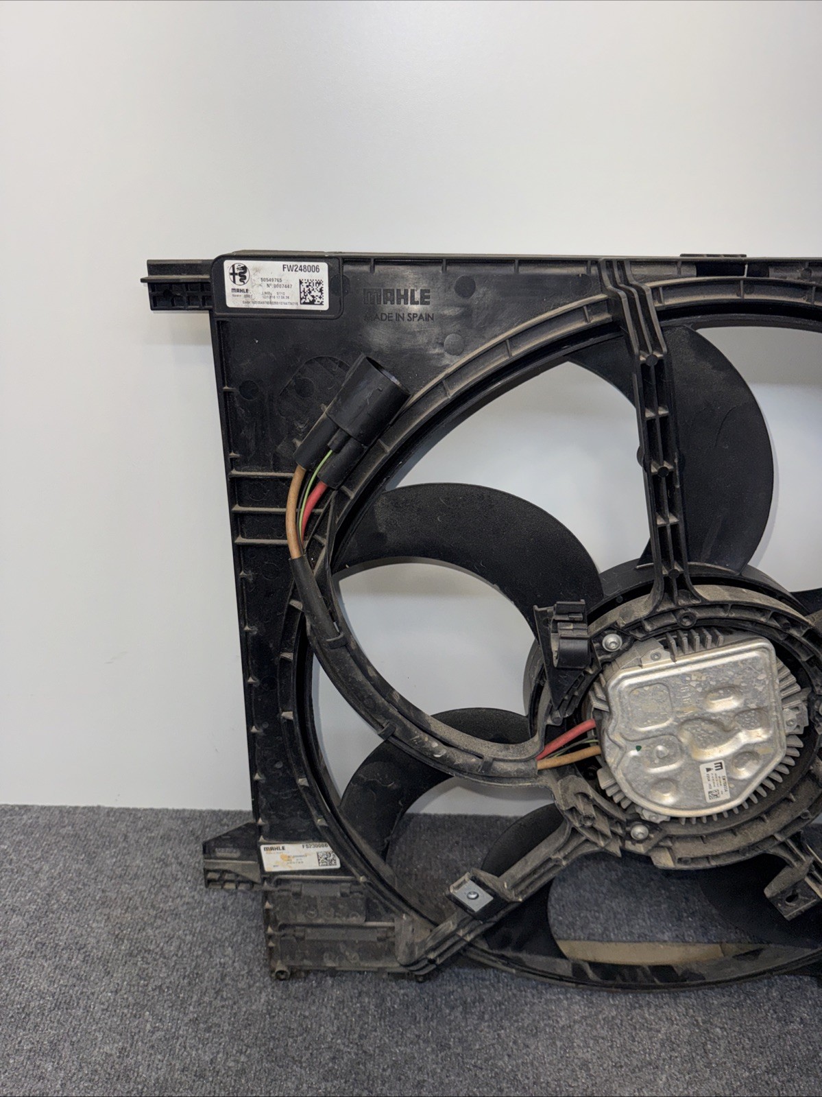 The 17-22 Alfa Romeo Giulia Engine Motor Cooling Radiator Fan Assembly OEM is a genuine Alfa Romeo part made of durable plastic. It includes a fan blade and is designed for a precise fit with OEM dimensions. This assembly is tested for performance and durability, ensuring optimal engine cooling for your Alfa Romeo vehicle. Made in Italy, this part comes with a 3-month manufacturer warranty, making it a reliable choice for maintaining the performance of your car.