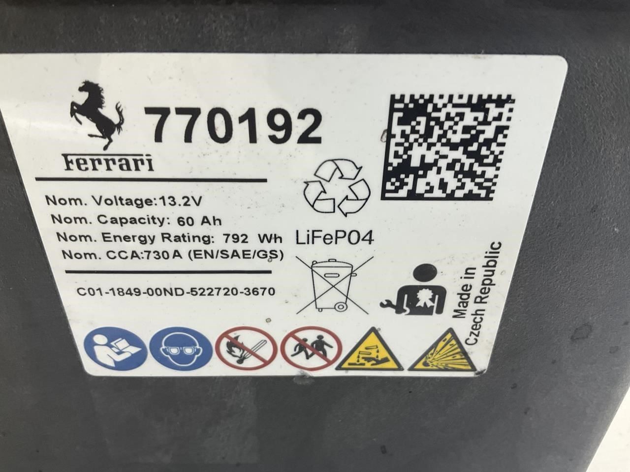 18-20 Ferrari 488 Pista (F142M) Lithium Battery 770192 P