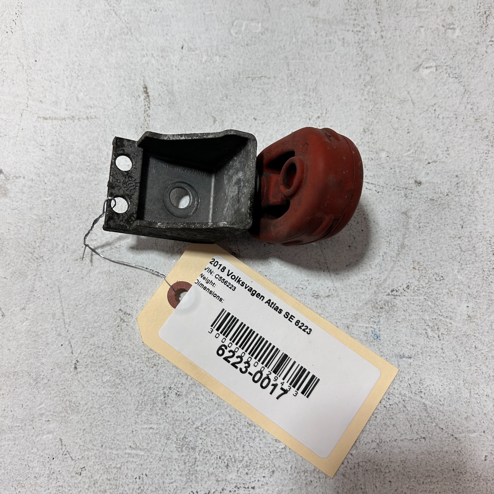**18-23 VW ATLAS FRONT RIGHT OR LEFT SIDE EXHAUST HANGER INSULATOR W/ BRACKET OEM** ## Vehicle Fitment YearMakeModelBody & TrimEngine & Transmission2023 Volkswagen ArteonSE R-Line, SEL Premium R-Line, SEL R-Line2.0L L4 - Gas2023 Volkswagen AtlasSE, SEL, SEL Premium R-Line, SEL R-Line Black2.0L L4 - Gas, 3.6L V6 - Gas2023 Volkswagen Atlas Cross SportSE, SEL, SEL Premium R-Line, SEL R-Line Black2.0L L4 - Gas, 3.6L V6 - Gas2023 Volkswagen GTIAutobahn, S, SE2.0L L4 - Gas2023 Volkswagen JettaGLI Autobahn, S, SE, SEL, Sport1.5L L4 - Gas, 2.0L L4 - Gas2023 Volkswagen TaosS, SE, SEL1.5L L4 - Gas2023 Volkswagen TiguanS, SE, SE R-Line Black, SEL R-Line2.0L L4 - Gas2022 Volkswagen ArteonSE R-Line, SEL Premium R-Line, SEL R-Line2.0L L4 - Gas2022 Volkswagen AtlasS, SE, SEL, SEL Premium, SEL Premium R-Line, SEL R-Line2.0L L4 - Gas, 3.6L V6 - Gas2022 Volkswagen Atlas Cross SportS, SE, SEL, SEL Premium R-Line, SEL R-Line2.0L L4 - Gas, 3.6L V6 - Gas2022 Volkswagen GTIAutobahn, S, SE2.0L L4 - Gas2022 Volkswagen JettaGLI Autobahn, S, SE, SEL, Sport1.5L L4 - Gas, 2.0L L4 - Gas2022 Volkswagen TaosS, SE, SEL1.5L L4 - Gas2022 Volkswagen TiguanS, SE, SE R-Line, SE R-Line Black, SEL R-Line2.0L L4 - Gas2021 Volkswagen ArteonSE, SEL Premium R-Line, SEL R-Line2.0L L4 - Gas2021 Volkswagen AtlasS, SE, SEL, SEL Premium, SEL Premium R-Line, SEL R-Line2.0L L4 - Gas, 3.6L V6 - Gas2021 Volkswagen Atlas Cross SportS, SE, SEL, SEL Premium, SEL R-Line2.0L L4 - Gas, 3.6L V6 - Gas2021 Volkswagen GTIAutobahn, S, SE2.0L L4 - Gas2021 Volkswagen GolfTSi1.4L L4 - Gas2021 Volkswagen JettaGLI Autobahn, GLI S, R-Line, S, SE, SEL, SEL Premium1.4L L4 - Gas, 2.0L L4 - Gas2021 Volkswagen TiguanS, SE, SE R-Line Black, SEL2.0L L4 - Gas2020 Volkswagen ArteonSE, SEL, SEL Premium, SEL Premium R-Line, SEL R-Line2.0L L4 - Gas2020 Volkswagen AtlasS, SE, SEL, SEL Premium, SEL R-Line2.0L L4 - Gas, 3.6L V6 - Gas2020 Volkswagen Atlas Cross SportS, SE, SE R-Line, SEL, SEL Premium, SEL Premium R-Line, SEL R-Line2.0L L4 - Gas, 3.6L V6 - Gas2020 Volkswagen GTIAutobahn, S, SE2.0L L4 - Gas2020 Volkswagen GolfTSi1.4L L4 - Gas2020 Volkswagen JettaGLI Autobahn, GLI S, R-Line, S, SE, SEL, SEL Premium1.4L L4 - Gas, 2.0L L4 - Gas2020 Volkswagen TiguanS, SE, SE R-Line Black, SEL, SEL Premium R-Line2.0L L4 - Gas2019 Volkswagen ArteonSE, SEL, SEL Premium R-Line, SEL R-Line2.0L L4 - Gas2019 Volkswagen AtlasS, SE, SE R-Line, SEL, SEL Premium, SEL R-Line2.0L L4 - Gas, 3.6L V6 - Gas2019 Volkswagen GTIAutobahn, Rabbit Edition, S, SE2.0L L4 - Gas2019 Volkswagen GolfS, SE1.4L L4 - Gas2019 Volkswagen Golf AlltrackS, SE, SEL1.8L L4 - Gas2019 Volkswagen Golf RBase2.0L L4 - Gas2019 Volkswagen Golf SportWagenS, SE1.4L L4 - Gas, 1.8L L4 - Gas2019 Volkswagen JettaGLI 35th Anniversary Edition, GLI Autobahn, GLI S, R-Line, S, SE, SEL, SEL Premium1.4L L4 - Gas, 2.0L L4 - Gas2019 Volkswagen TiguanS, SE, SEL, SEL Premium, SEL Premium R-Line, SEL R-Line, SEL R-Line Jet Black2.0L L4 - Gas2018 Volkswagen AtlasLaunch Edition, S, SE, SEL, SEL Premium2.0L L4 - Gas, 3.6L V6 - Gas2018 Volkswagen GTIAutobahn, S, SE2.0L L4 - Gas2018 Volkswagen GolfS, SE, SEL1.8L L4 - Gas2018 Volkswagen Golf AlltrackS, SE, SEL1.8L L4 - Gas2018 Volkswagen Golf RBase2.0L L4 - Gas2018 Volkswagen Golf SportWagenS, SE, SEL1.8L L4 - Gas2018 Volkswagen TiguanS, SE, SEL, SEL Premium2.0L L4 - Gas2017 Volkswagen GTIAutobahn, S, SE, Sport2.0L L4 - Gas2017 Volkswagen GolfS, Wolfsburg Edition1.8L L4 - Gas2017 Volkswagen Golf AlltrackS, SE, SEL1.8L L4 - Gas2017 Volkswagen Golf RBase2.0L L4 - Gas2017 Volkswagen Golf SportWagenS, SE, SEL1.8L L4 - Gas2016 Volkswagen GTIAutobahn, S, SE2.0L L4 - Gas2016 Volkswagen GolfBase, S, SE, SEL1.8L L4 - Gas2016 Volkswagen Golf RBase2.0L L4 - Gas2016 Volkswagen Golf SportWagenLimited Edition, S, SE, SEL1.8L L4 - Gas2015 Volkswagen GTIAutobahn, S, SE2.0L L4 - Gas2015 Volkswagen GolfLaunch Edition, S, SE, SEL, TDI S, TDI SE, TDI SEL1.8L L4 - Gas, 2.0L L4 - Diesel2015 Volkswagen Golf RBase2.0L L4 - Gas2015 Volkswagen Golf SportWagenS, SE, SEL1.8L L4 - Gas Please, we provide detailed pictures and donor vehicle information for good reasons, make sure this part will work for your vehicle, research and ask questions before ordering, it can be difficult for us to pinpoint exact fit for all used parts that we sell, no refunds will be given for incorrectly ordered part, we still guarantee quality and functionality of every used part offered. Thank you very much!!! All parts advertised have already been removed from used/salvage vehicles and already on the shelf ready for shipments. Various gaskets, seals, sealing rings, clamps, clips, brackets and other fasteners may often remain on parts. They are of ONE-TIME USE and very often get damaged when the part is removed. Such components must be purchased ONLY NEW and are not included into the kit! In other words, they may be present on the parts but require mandatory replacement with the NEW ones. Do not think that they can be reused during installation. We are not responsible for installing parts without replacing them with the new ones. **You will** **only receive what is pictured unless otherwise stated in the description.** **Please do not assume anything else will be included if it is not pictured.** All of the parts we sell are guaranteed to be in good working condition unless otherwise noted. Our photos provide an accurate representation of the listed product. Products sold in quantities will show a single image representing the others in equal or greater condition. We ONLY guarantee the part(s) will fit the vehicle(s) listed in the description. If your vehicle was not originally equipped with the EXACT part(s) listed, it is your responsibility to consult a dealer to see if it will fit your application. Additional items may be needed if this is an upgrade or custom installation. Please consult your local dealer for ALL other applications. **Warranty:** All engines/transmissions/transfer cases/differentials come with 30-day warranty for PARTS replac