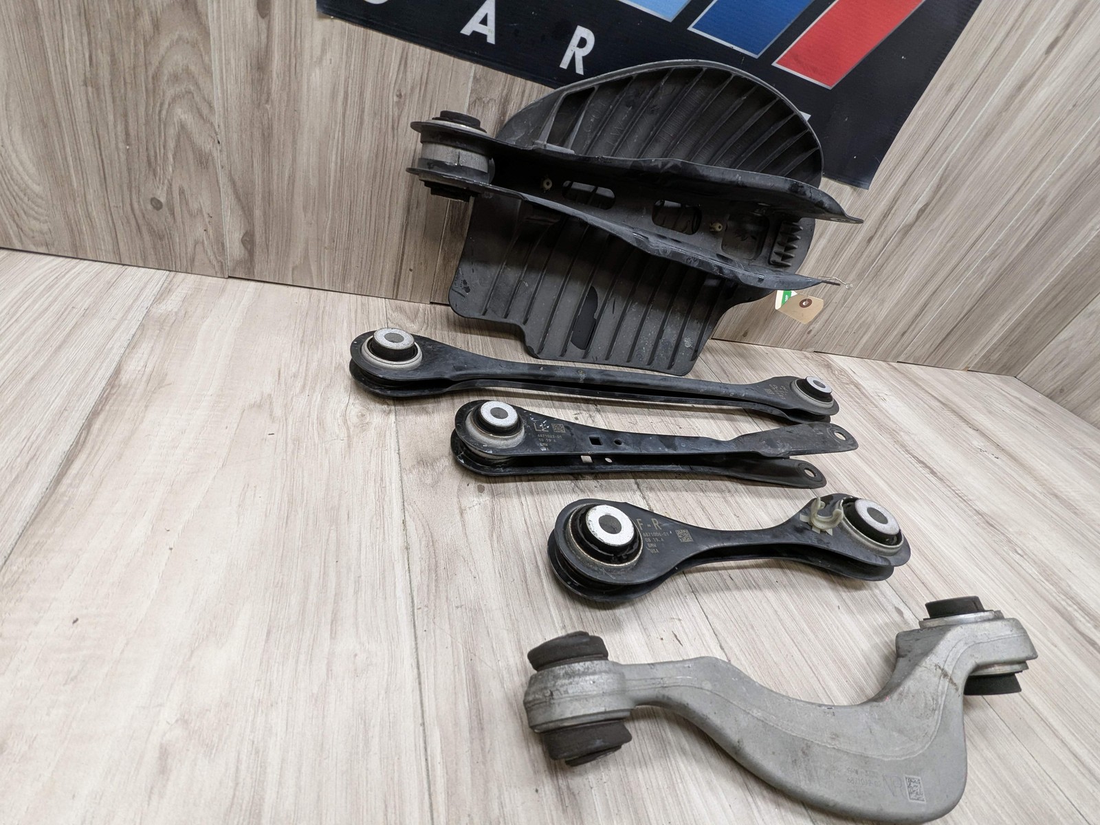 ## 18-24 OEM BMW G01 G02 X3 X4 REAR Right Passenger Upper Lower Control Arm SET 5 - SKU: **49552** - Brand: **BMW** - Condition: **Used** - Notes: **Set of 5! With Under carriage trim! Intact!** - MPN: **6871023** - Manufacturer Part Number: **33306871023** - OE/OEM Part Number: **6871023** **We're on Instagram! Follow us! oe\_mgarage** **All parts are used unless otherwise noted! Please understand that being that parts are used there may be some wear and tear & scratches etc. We cannot guarantee the condition of paint & or that paint color will be an exact match as yours. We try to show as much of the condition as possible through photos and notes!** **Original Car:** 2019 BMW X3 **Series:** G01 **Vin Number:** 5UXTR7C58KLR44714 **Mileage:** 0 **Engine:** B46B20O0 **Transmission:** 1 **Part number:** 6871023, 33306871023, 33306871016, 6871016, 33306871012, 6871012, 33306871006, 6871006, 33306871020, 6871020 **Exterior Color Paint Code:** SOPHISTOGRAU BRILLANTEFFEKT METALLI (A90) **SKU:** 49552 **Location:** C249 **Notes:** Set of 5! With Under carriage trim! Intact! **30 DAY WARRANTY!!** Warranty covers the cost of the item! It does not cover shipping or labor! Used condition items may have minor imperfections. Please look at pictures for details! And understand that this is a USED part after all! Compatibility is the responsibility of the customer to ensure!! Please feel free to reach out with any questions!! [