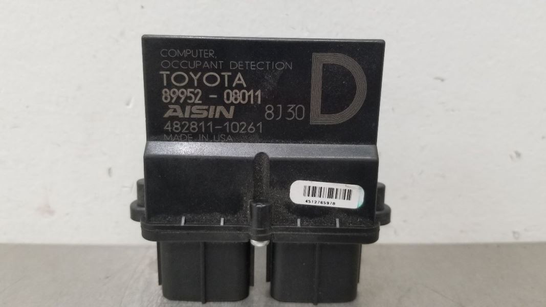 CONTACT SELLER FOR MORE INFO. 8995208011 Donor Vehicle Model : TUNDRA Year : 2019 Mileage : 66000 (0 = not available or unknown) Stock Number : AC1189 Notes : AIR BAG, OCCUPANT DETECTION, (UNDER I certify this airbag is not subject to recall and will be shipped in accordance with hazmat shipping requirements REQUIRES PROGRAMMING. CONTACT SELLER FOR MORE INFO. 8995208011 This Part Will Fit These Makes And Models With These Options 4 RUNNER 10-13 Air Bag; occupant detection, (under passenger side front seat) LEXUS GX460 10-13 Air Bag; occupant detection, (under passenger side front seat) PRIUS 10-11 Air Bag; occupant detection, (under passenger side front seat) PRIUS 12 Air Bag; occupant detection, (under passenger side front seat), Prius Plug-in (VIN DP, 7th and 8th digit), ID 89952-47021 SCION TC 11-12 Air Bag; occupant detection, (under passenger side front seat) SIENNA 11-20 Air Bag; occupant detection, (under passenger side front seat) TUNDRA 14-21 Air Bag; occupant detection, (under passenger side front seat) About UsPaymentShippingReturnsWarranty About Us We are happy to verify fitment for you prior to purchase via your vehicle’s VIN (Vehicle Identification Number). Please contact us with any questions prior to purchasing. Orders are sent to the shipping department throughout the day therefore we cannot guarantee adjustments to orders after payment is received. **Parts Grading** A standard code system is used to communicate the condition and quality of a part between automotive recyclers, automotive repair shops, and insurers. Knowing how these codes are used will help you understand whether the part meets your expectations before you buy it and what you can expect from the part when you receive it. **A Grade**\- The highest quality part. It is of low miles and/or exceptional condition for its age. **B Grade**\- The second level quality part. It is of average miles and normal condition for its age. **C Grade**\- The third level quality part. It has high miles and/or light damage. **No Grade**\- A part that has not yet been graded. Payment All orders must be paid in full prior to shipment. We accept credit card and cash for Local Pickup orders. If payment is not received, an Unpaid Item case will be opened for the sake of seller fee reimbursement. Shipping **OK Auto Parts** ships to U.S. addresses within the lower 48 states. Small packages will ship FedEx Ground only. **We do not ship USPS and do not ship to P.O. Boxes.** Itmes that exceed the FedEx maximum deimensions or weight will ship LTL freight on a common carrier such as R&L Carriers, AAA Cooper, South Eastern, T Force, etc. **LTL freight must ship to a business / commercial address** that is easly accessible by a semi-truck pulling a 53 foot trailer. This address must also have either a loading dock or a forklift for unloading. If a commercial address is not availible please contact us to to see if terminal pickup is an option. We are responsible for your purchase getting to you safely. We only ship on carriers that we have confidence in getting your purchase to you safely. Free pick up at our facilities are available M-F 8:00 a.m. to 5:00 p.m. Please message us prior to your purchase to arrange pick up. Purchases will be held for a maximum of five (5) working days. If your purchase is not picked up within five working days your money will be refunded and the item will be listed again for sale. All items typically ship the same day or next business day. Please allow 5-10 working days for delivery. Most areas in the U.S. are within 5 days. No expedited shipping is available. If an item arrives damaged, please contact us within 24 hrs for instructions. Returns All parts must be returned in their original condition to receive full credit. Please message us with questions. Warranty All parts come with a standard warranty, please contact us for details prior to ordering. Timeframe is listed within the Warranty section of the listing for each part. Warranty claims must be made with our warranty department, details will be included with the packing slip for each order. Labor and costs associated with part installation are not included in the warranty, parts only.   Copyright © 2022, All Rights Reserved. Copyright © 2022, All rights reserved. Design & Developed By : eFusionWorld
