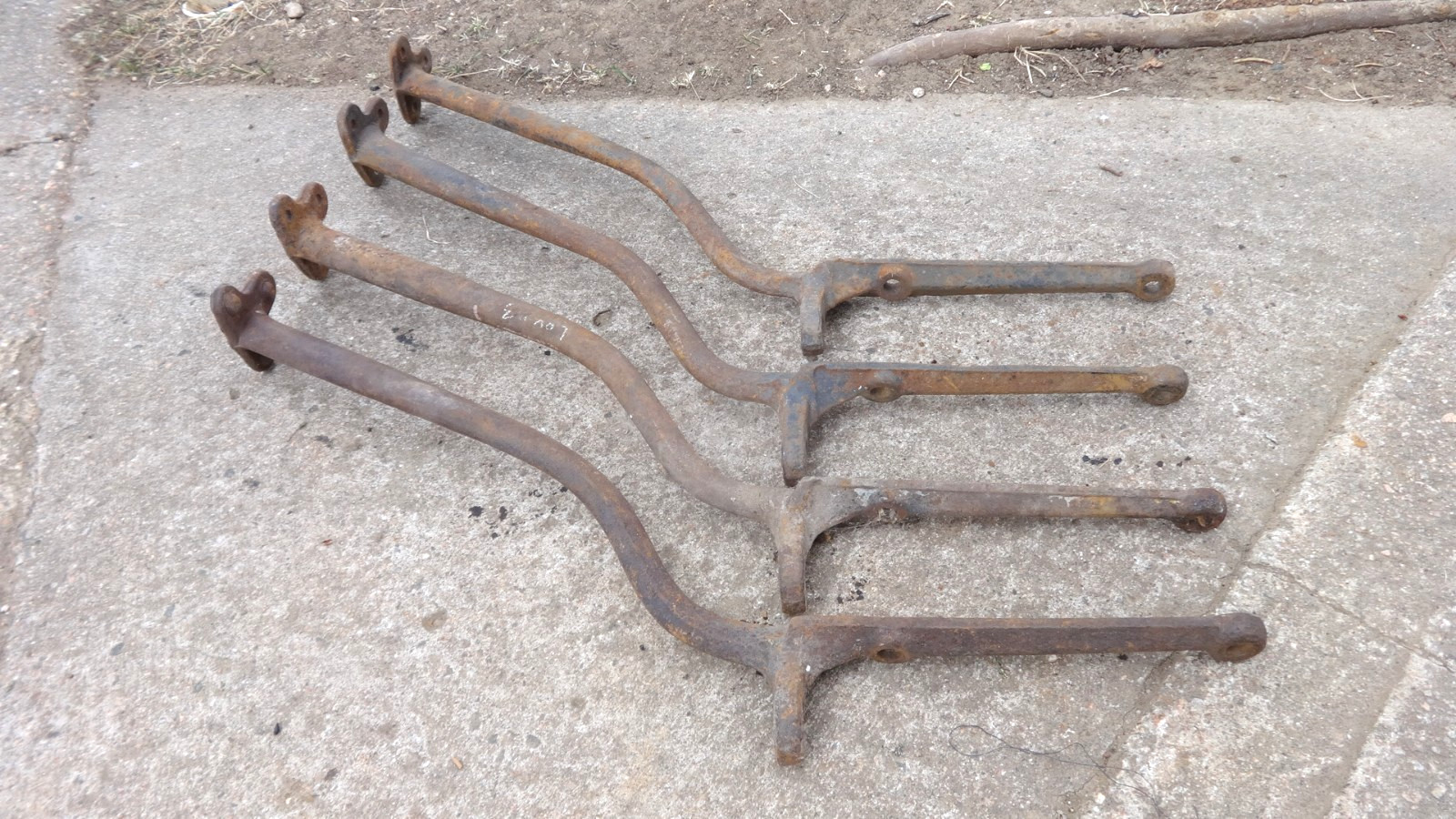 This is an original set of 4- 1910-14 Model T Ford Running Board Brackets. Pretty decent condition, some lite pitting and spots of pitting in areas-see photos. Will need some minor straightening in areas-see photos. Not sure of other early years these may fit.