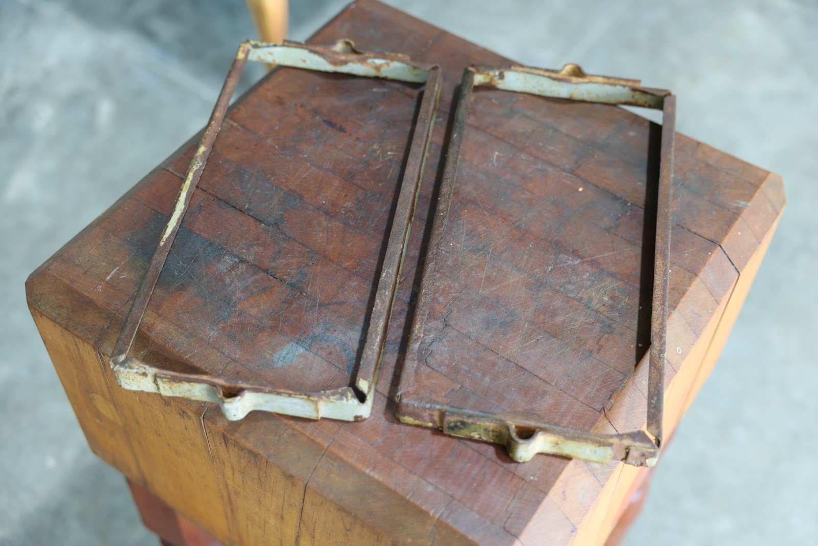 2 MATCHING BATTERY HOLD DOWN BRACKETS. UNSURE WHAT MAKE/MODEL THESE ARE FOR. SEE PHOTOS FOR MEASUREMENTS. SHOWS PAINT LOSS SOME RUST AND PATINA FROM AGE. PLEASE ASK IF YOU HAVE ANY QUESTIONS THANK YOU!