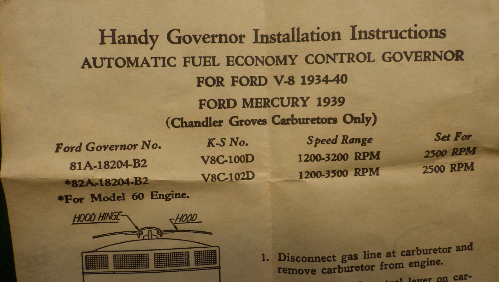 1934-1939 Ford Carburetor Partial Governor Kit/hardware+linkage NOS