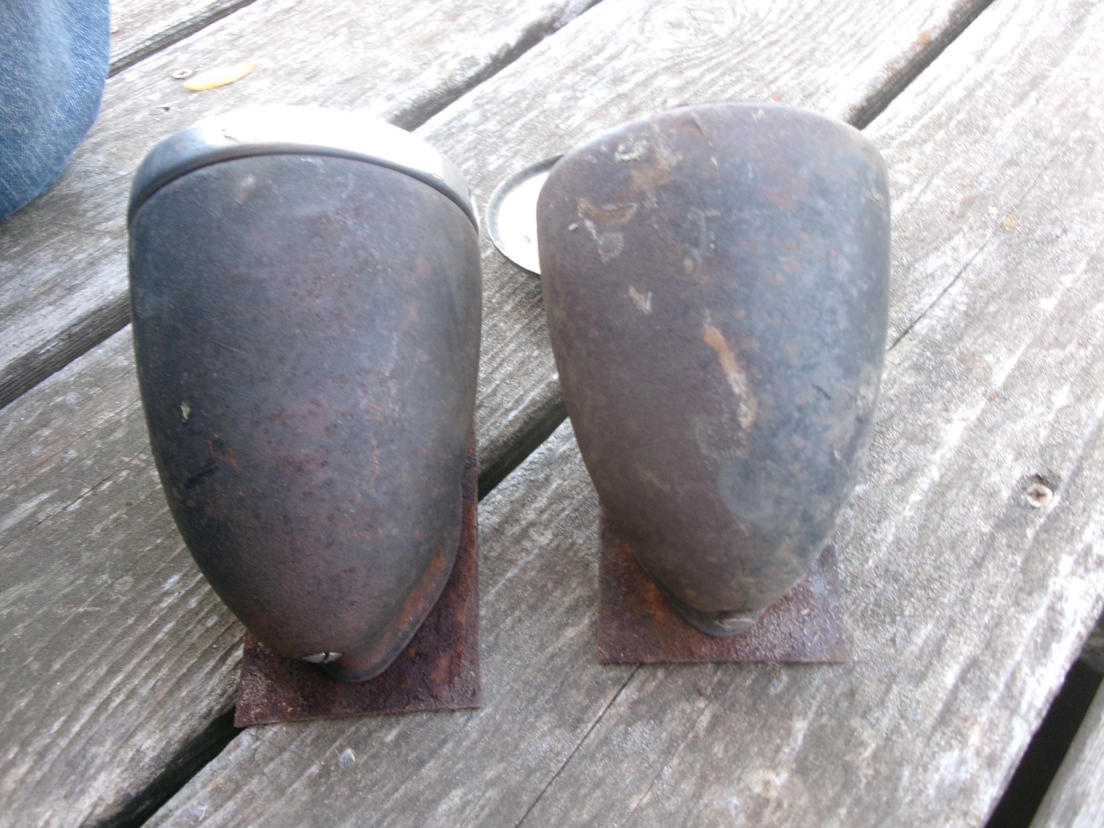 HERE IS A VINTAGE ORIGINAL PAIR OF COWL OR PARKING LIGHTS IN AS FOUND USED CONDITION WITH WEAR, SURFACE RUST, SOME PITTING, 2 MOUNTING STUDS ARE BROKE OFF, AND MISSING PARTS SO SOLD AS IS TO RESTORE AS SHOWN.. I WAS TOLD THESE FIT 1941 - 1947 ERA DODGE OR PLYMOUTH TRUCKS BUT I AM UNSURE OF THE APPLICATIONS OR COMPLETENESS OF THIS ITEM SO PLEASE USE THE PHOTOGRAPHS TO JUDGE APPLICATIONS FOR YOURSELF. ALL OF OUR ITEMS ARE OLD USED OR VINTAGE PARTS AND WILL HAVE POSSIBLE WEAR, AGING, AND DENTING SO PLEASE LOOK THE PHOTOGRAPHS OVER WELL AS THEY ARE A MAJOR PART OF THE DESCRIPTION. **Check us out Online on YouTube just search Dolloff Antiques Garage or Facebook under Dolloff Antiques Collector Car & Truck Parts.**