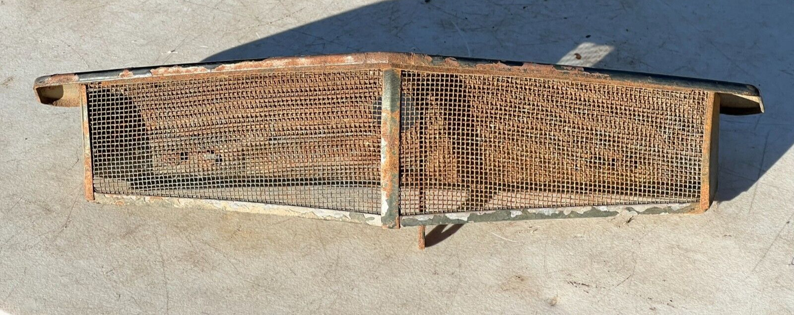 **COWL VENT.** **PULLED FROM A 1941 CADILLAC.** **SOLID USED CONDITION. LIGHT SURFACE RUST.** **USE CLOSEUP VIEWER TO BEST DETERMINE CONDITION**
