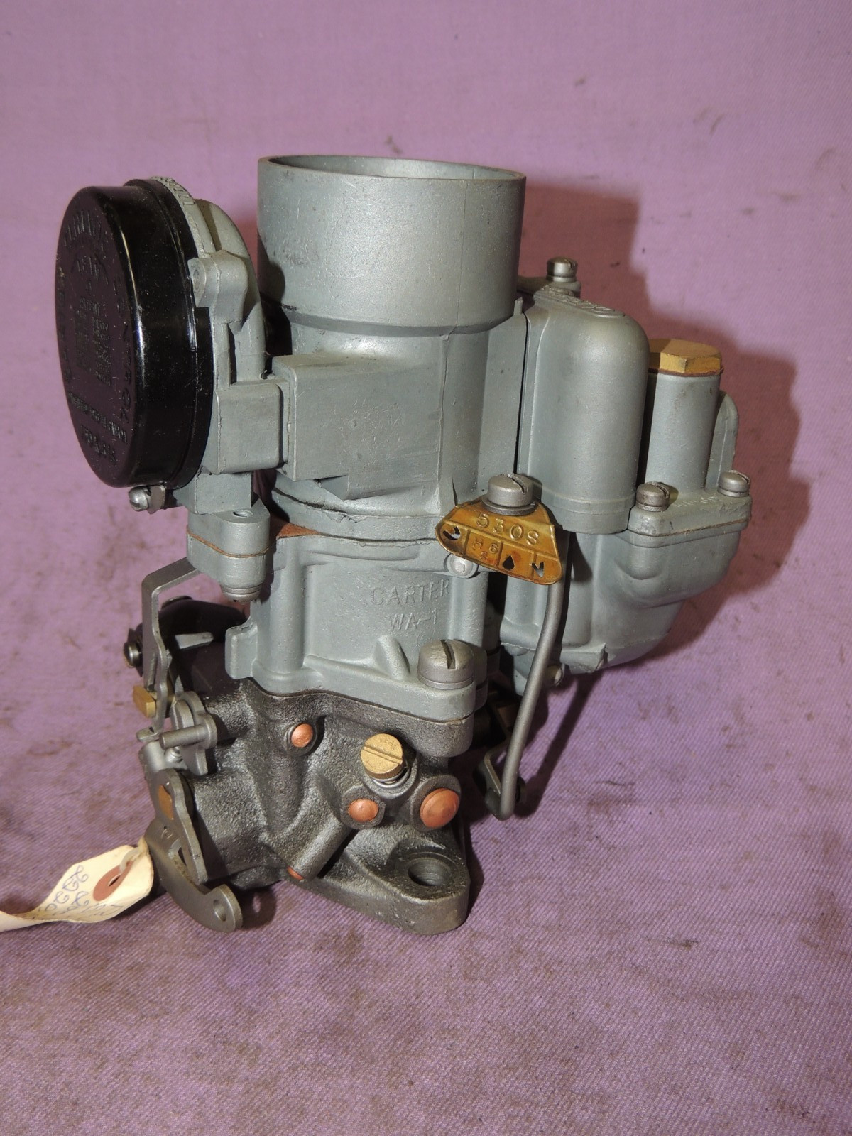 Carter WA-1 # 530-S carb for 1942-50 Packard 6cyl. 110 models 2000, 2010, 2020, 2220, 2240, 2320. Perfect starter switch and choke cover. Butterflies are free and have no excess wear. Appears to be totally complete and in excellent condition but is NOT rebuilt. Flat fee shipping $18.00 within continental U.S. including insurance.