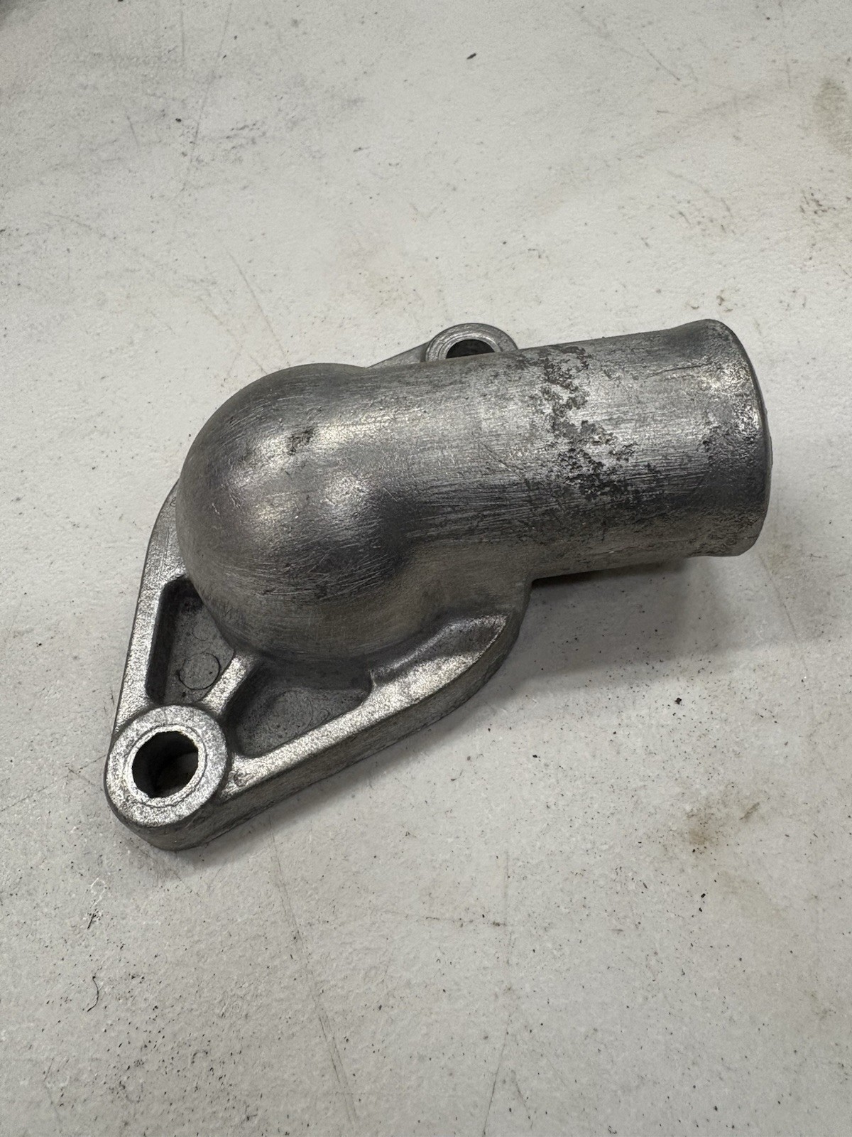 OEM GM Oldsmobile water neck thermostat housing. Fits 303-324/371 Aluminum water neck. Nice original part. Sandblasted and wire wheeled
