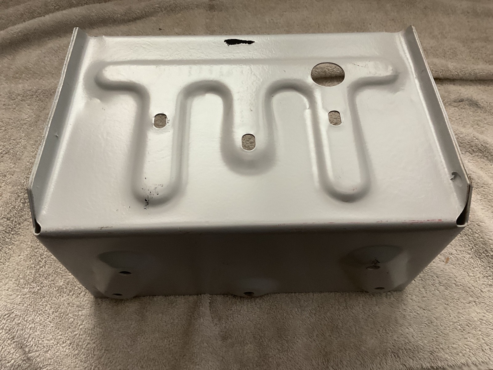 This battery box fits from a 1949 to a 1951 mercury’s. This is OEM . It has a little cancer as you can see in the picture no big deal. I usually put a piece of rubber down before I put a battery in