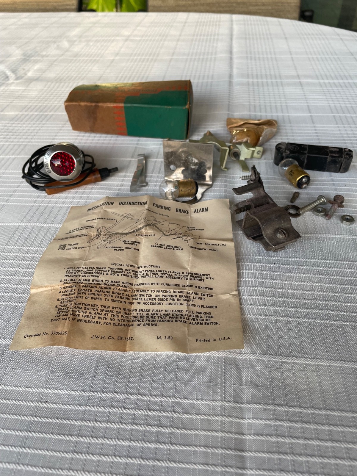 1953, 1954, 1955 Chevy Corvette emergency brake indicator light. Original, vintage part, includes switch and accessory fuse holder.