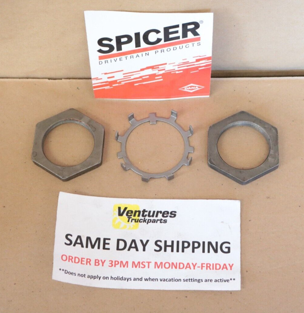 ## 1953-1969 Ford F250 ## Good Used Dana 60 Rear Axle Spindle Nut Kit Kit Includes all that is pictured (kit may include either style of lock washer pictured) Thread Size 1-13/16" X 16 Outside Flat to Outside Flat 2-3/8"  Questions? Feel free to ask us! We usually respond within 24 hours. All non-paying bidders will be reported! SHIPPING INFORMATION We ship: - UPS - USPS - Various Carriers for truck freight shipments We offer same-day shipping on most items we sell if order is paid for by 3:00 p.m. mountain standard time Monday through Friday. Same-day shipping does not apply on holidays or when vacation settings are active.