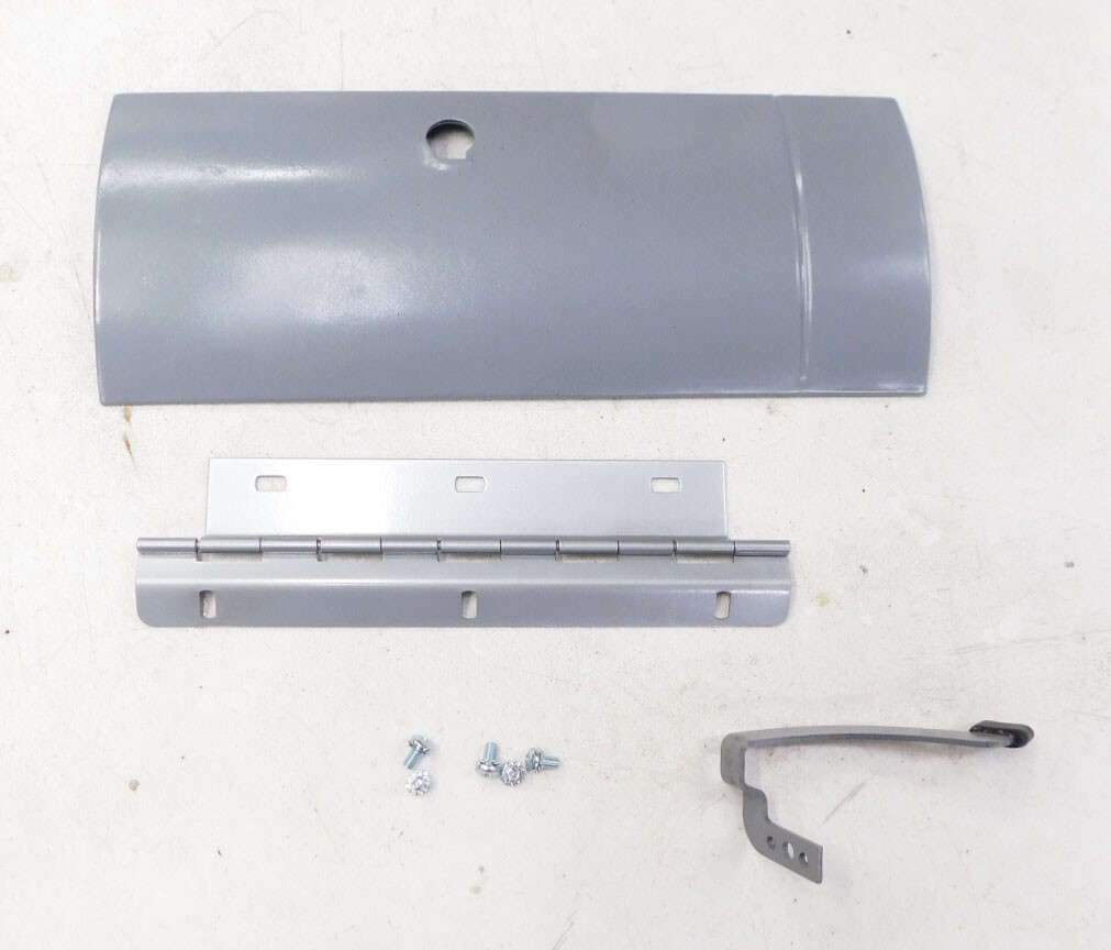 1955 1956 chevy chevrolet glove box lid, hinge and new arm. new screws. sand blasted and primed. above driver quality. good condition. in my opinion good condition for an original. look at the pictures. you be the judge. 55 56.