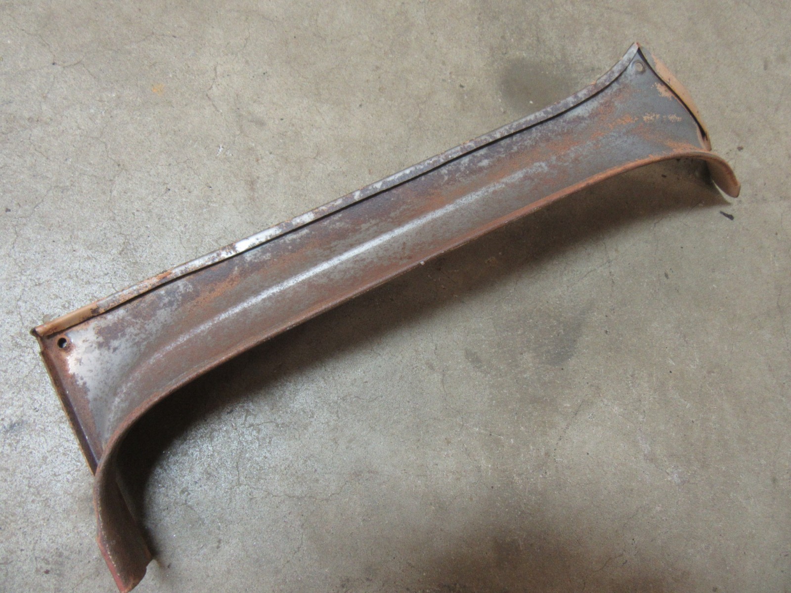 This is the PASSENGER side interior windshield roof pillar garnish trim piece removed from a 1955-57 Chevrolet sedan or wagon cars. In solid shape but has some rust and pitting and would need to be refinished. Any questions feel free to email, thanks. We will do our best to resolve the problem. BUYER'S NOTE All the items we list the exact year and model the part was removed from. We make mistakes and sometimes the parts may have been changed over the years and could have come from a different year or model. We try to list the years and models as best we can with the information we have for interchange between models. Please do not wait till you receive the part and come to the conclusion it is the wrong part and expect to be reinbursed for shipping costs. There is also a 15% restocking fee on all returns unless previously disscussed before item is returned. We also offer for added fees your part can be blasted or powder coated and ready to install once you receive it. Email for a price quote. SHIPPING INSTRUCTIONS: FOR A ACCURATE QUOTE THE BUYER'S ZIP CODE MUST BE ENTERED IN THE SHIPPING DETAILS. WARRANTY INFORMATION: NO WARRANTY IS WRITTEN OR IMPLIED ON ANY USED PARTS WE SELL. ALL PARTS ARE SOLD AS IS WITH NO GUARANTEES WRITTEN OR IMPLIED. PLEASE NOTE THAT SOME ITEMS WE HAVE IN STOCK MAY NOT BE THE SAME AS THE ONES PICTURED DUE TO HAVING DUPLICATES. WE TRY AND POST A PICTURE OF THE WORST ONE WE HAVE IN STOCK SO THE ONE YOU RECEIVE IS IN BETTER SHAPE MOST OF THE TIME IF IT IS A DUPLICATE.
