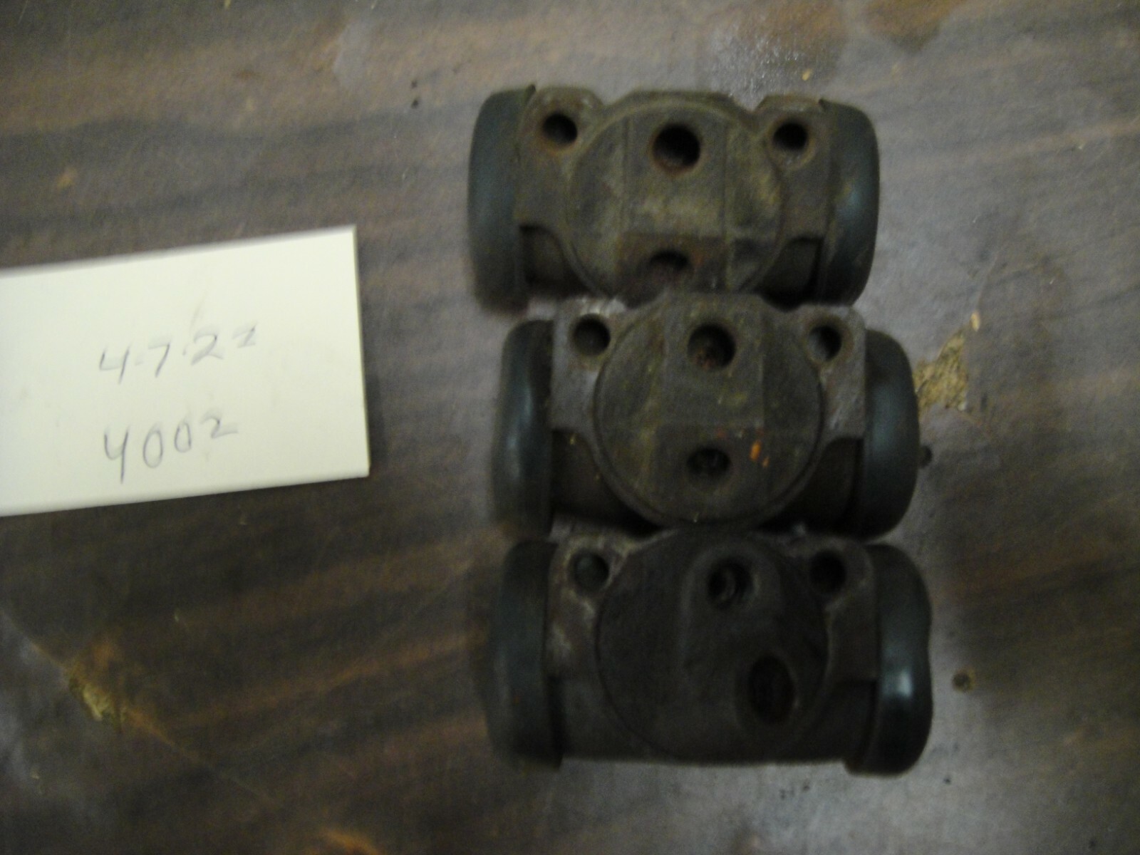 1956-62 Corvette Wheel Cylinders     1956-62 Corvette Wheel Cylinders You Are Purchasing 3 Wheel Cylinder 1 Front 630 2 rear 470 and 471, All 3 are in used condition needing rebuilt, Please See Photo's We have identified this item to the best of our ability but I may have gotten it wrong or it may fit other years and makes so please do your own research to make sure it is proper for your vehicle **.** stk # BY002-4722 We have a very exstensive Inventory of Intakes, Heads, Carbuertors and Blocks so if you are looking for something specific please e-mail us with your needs NOS Does not mean in show condition. If you buy multiple Items Please wait for an invoice before paying so we can calculate the shipping costs Please review the large pictures for details as we consider them part of our description. Our feedback is very important to us. We do our best to ensure that the transaction goes smoothly. If you should happen to experience an issue with the transaction, please feel free to contact us before leaving feedback. We want everyone to have a pleasant experience shopping with us. The world's largest collection of classic Corvettes and parts can only be found at ProTeam Corvette Sales in Napoleon, Ohio. Our entire stock of 1953 to 2008 Corvettes are stored in our climate controlled indoor showrooms year round, for your convenience. Many of our Corvettes have been beautifully restored to like-new condition and carry prestigious honors such as the Bloomington Gold Certification, the coveted NCRS Top Flight award, and the Triple Crown designation. Demand for these investment grade, vintage Corvettes has steadily increased with many of the rarest Corvettes falling into private collections and reserved from sale. ProTeam Corvette Sales has long been recognized as the nation’s leader in classic Corvette sales, service and restoration. We offer a wide selection of Corvettes and parts to the driving enthusiast and collector alike. ADD US TO YOUR FAVORITE SELLERS LIST! WE WILL BE ADDING NEW, USED, AND NOS CORVETTE PARTS OFTEN!!!!!!!!  Payment is due within 4 business days of listing close. Ohio residents are subject to sales tax.  Most parts will be shipped within 72 business hours of cleared payment. Residents of Hawaii, Puerto Rico and Alaska are subject to a surcharge if the item needs to be shipped via UPS. Contact us prior to purchase for the shipping costs. We will gladly ship internationally. International buyers must contact us for a shipping quote prior to purchase. Buyer will be responsible for shipping costs including any and all fees, duties or taxes. Please contact your local customs office for those costs.    txzj pxzj4635 txzj58