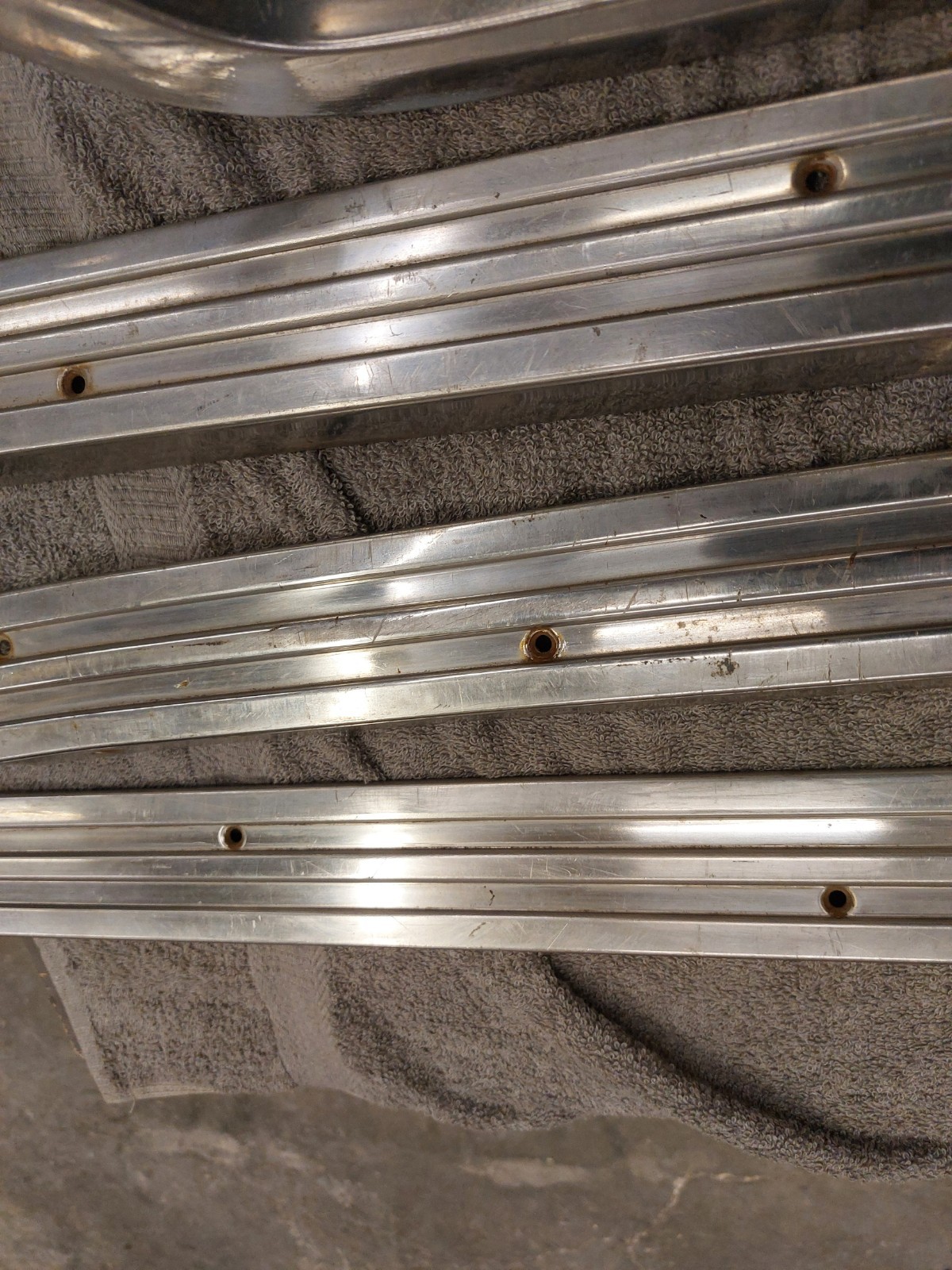 This is decent set of 57 58 Ranchero bed trim. There is no holes drilled for toneau cover etc. There is some small dings and scratches. Nothing severe that cant be fixed. What you see is what you get. Shipping is for lower 48 states. Thanks for looking