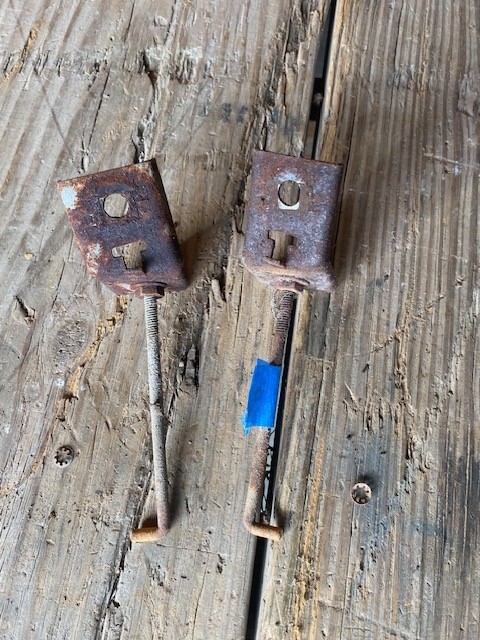 You are viewing a pair of hood trim brackets that hold the chrome trim piece to the front of the hood on a 1958 Cadillac. Original with surface rust only. Mounting clips are included. Shipping is $15 to the lower 48 states. Good Luck!