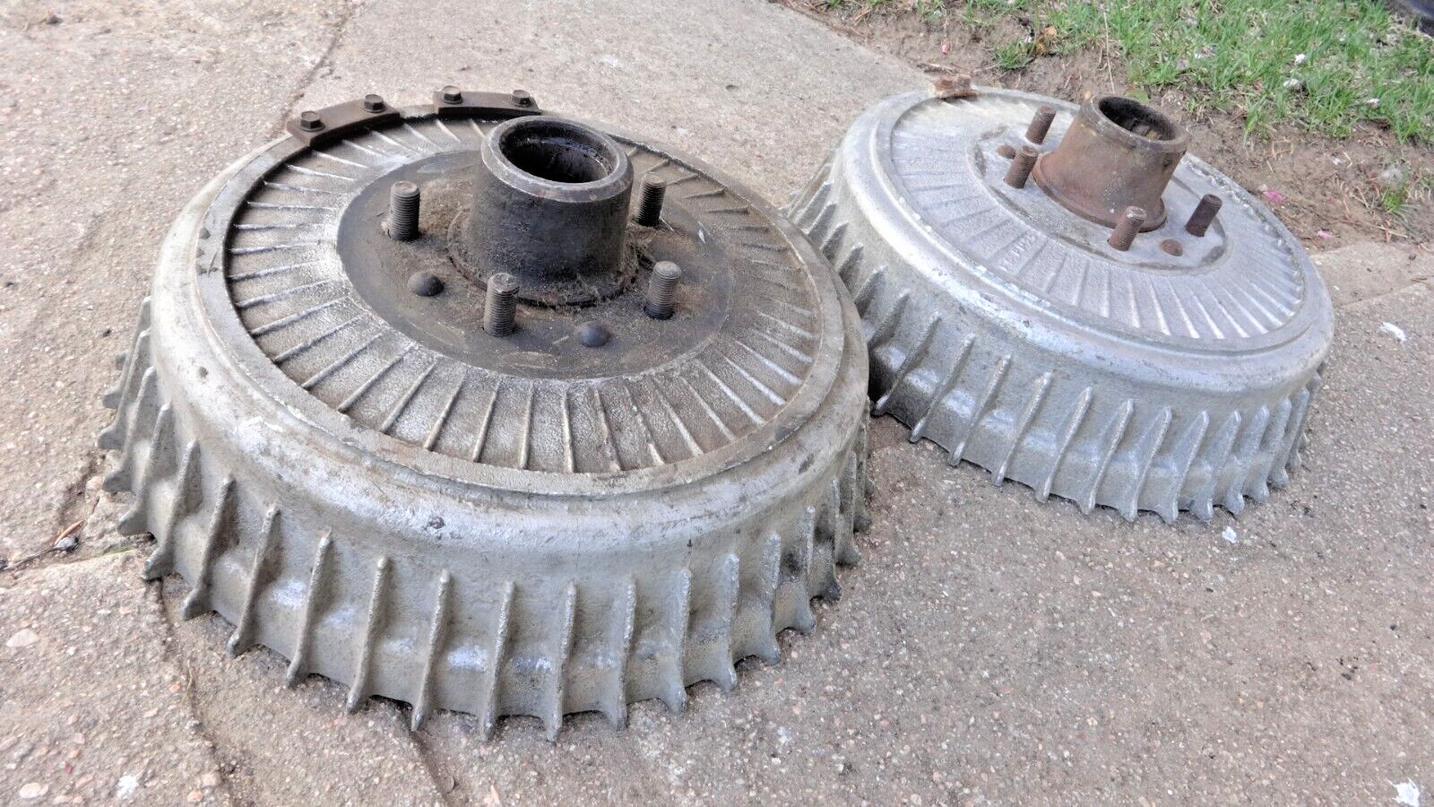 1960's Buick 45 FIN ALUMINUM FRONT BRAKE DRUMS / HUBS Original pair Custom scta