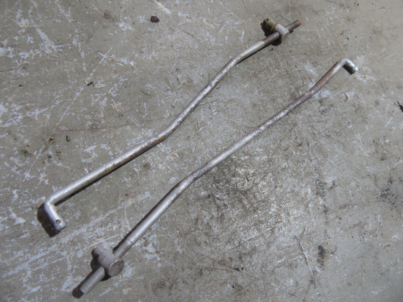 Description: This is the carburetor linkage rods removed from a 1961 Belair with a 283 v8 engine. They measure 10 3/4 and 11 3/4 inch long. Connect from the firewall pedal to the carburetor. In ok shape some rust but should work fine. We will do our best to resolve the problem. BUYER'S NOTE All the items we list the exact year and model the part was removed from. We make mistakes and sometimes the parts may have been changed over the years and could have come from a different year or model. We try to list the years and models as best we can with the information we have for interchange between models. Please do not wait till you receive the part and come to the conclusion it is the wrong part and expect to be reinbursed for shipping costs. We also offer for added fees your part can be blasted or powder coated and ready to install once you receive it. Email for a price quote. SHIPPING INSTRUCTIONS: FOR A ACCURATE QUOTE THE BUYER'S ZIP CODE MUST BE ENTERED IN THE SHIPPING DETAILS. WARRANTY INFORMATION: NO WARRANTY IS WRITTEN OR IMPLIED ON ANY USED PARTS WE SELL. ALL PARTS ARE SOLD AS IS WITH NO GUARANTEES WRITTEN OR IMPLIED. Please note that some items we have may not be the same as the ones pictured. Due to having duplicates. We try and post a picture of the worst one we have in stock, so that the one you receive is in better shape. But sometimes the worst one is what is left.