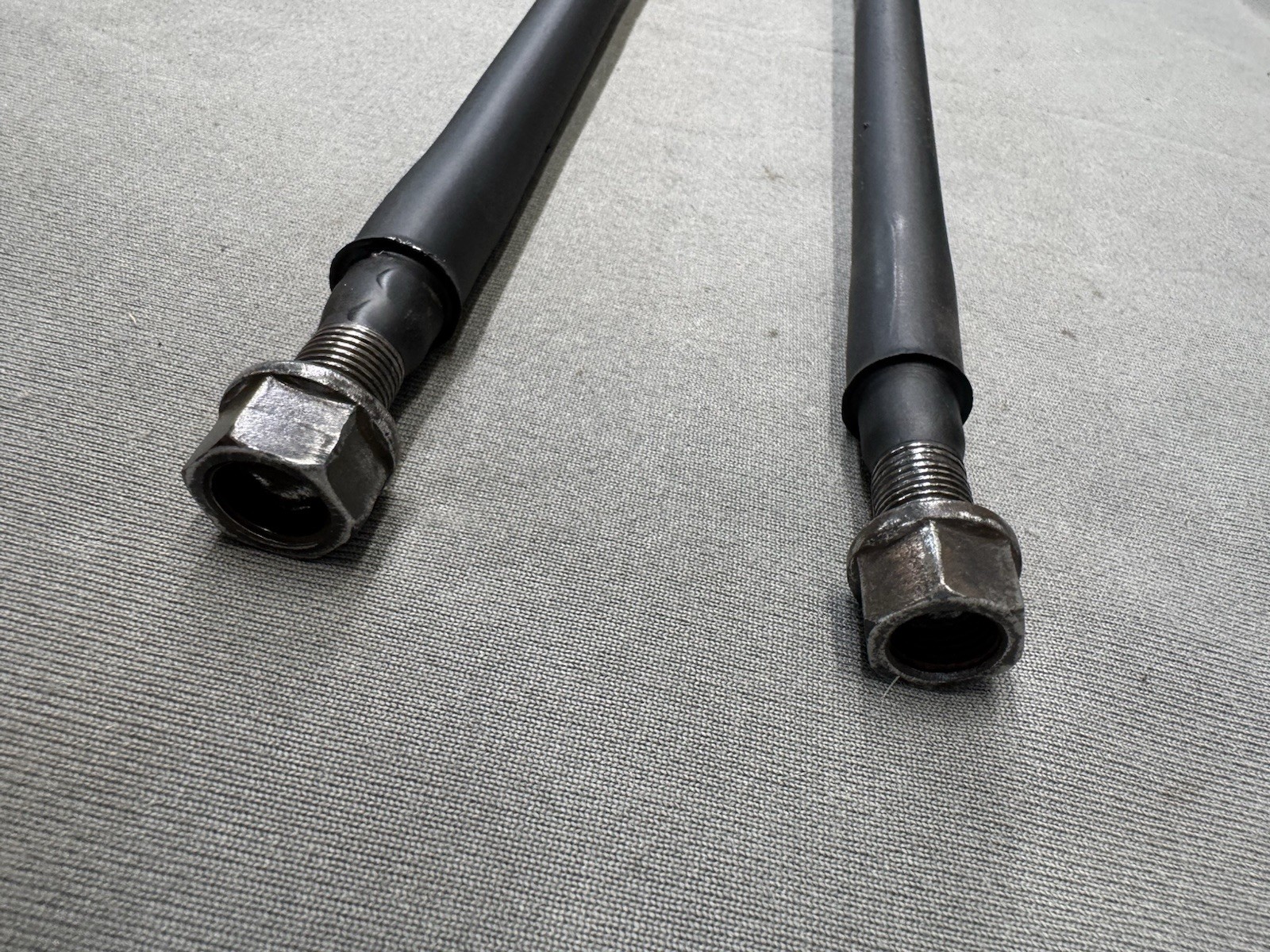 **Driver quality factory original front steering strut bars for 62-65 Mopar** **Factory original washers and nuts included as well** **Will obviously need the rubber bushings before installing** **If you look at last photo the threads on one toward beginning are nicked up.** **The nut still goes on and off properly and secures. A die will clean it up nice** **Assembly line correct genuine MoPar part not a cheap aftermarket** **Use as is for a nice driver car or refinish for show**