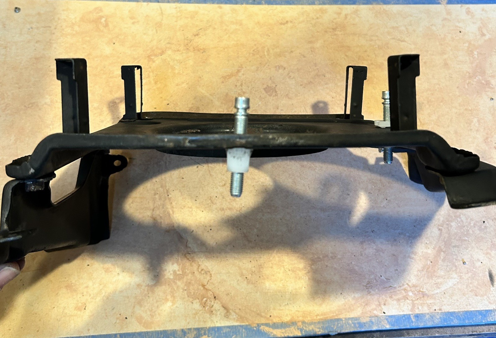 A complete headlight mounting plate with both brackets. This is in very good shape. Surface rust was removed and sprayed with rust reformer to protect the metal. Bezel mounting tabs have been re-riveted as well. Includes headlight adjusters. Only needs headlight bucket spring. Hard to find part made exclusively for 1962 C10/20 etc.