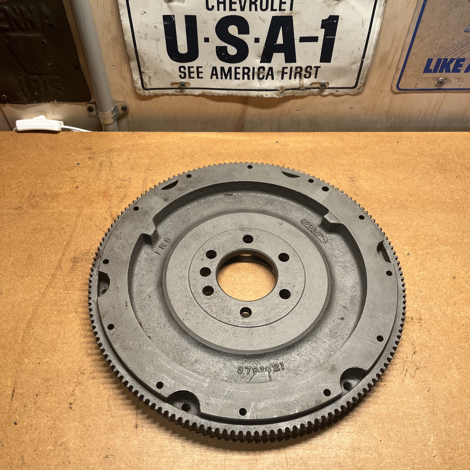 Professionally resurfaced this year and has been in storage for over 30 years. GM flywheel, part number 3791021, is a vintage piece from the 1963 Corvette 4 speed transmission It has a diameter of 10.5 inches and a ring gear outside diameter of 12.75 inches, with 153 teeth. This flywheel is made of steel and is suitable for manual transmission types.