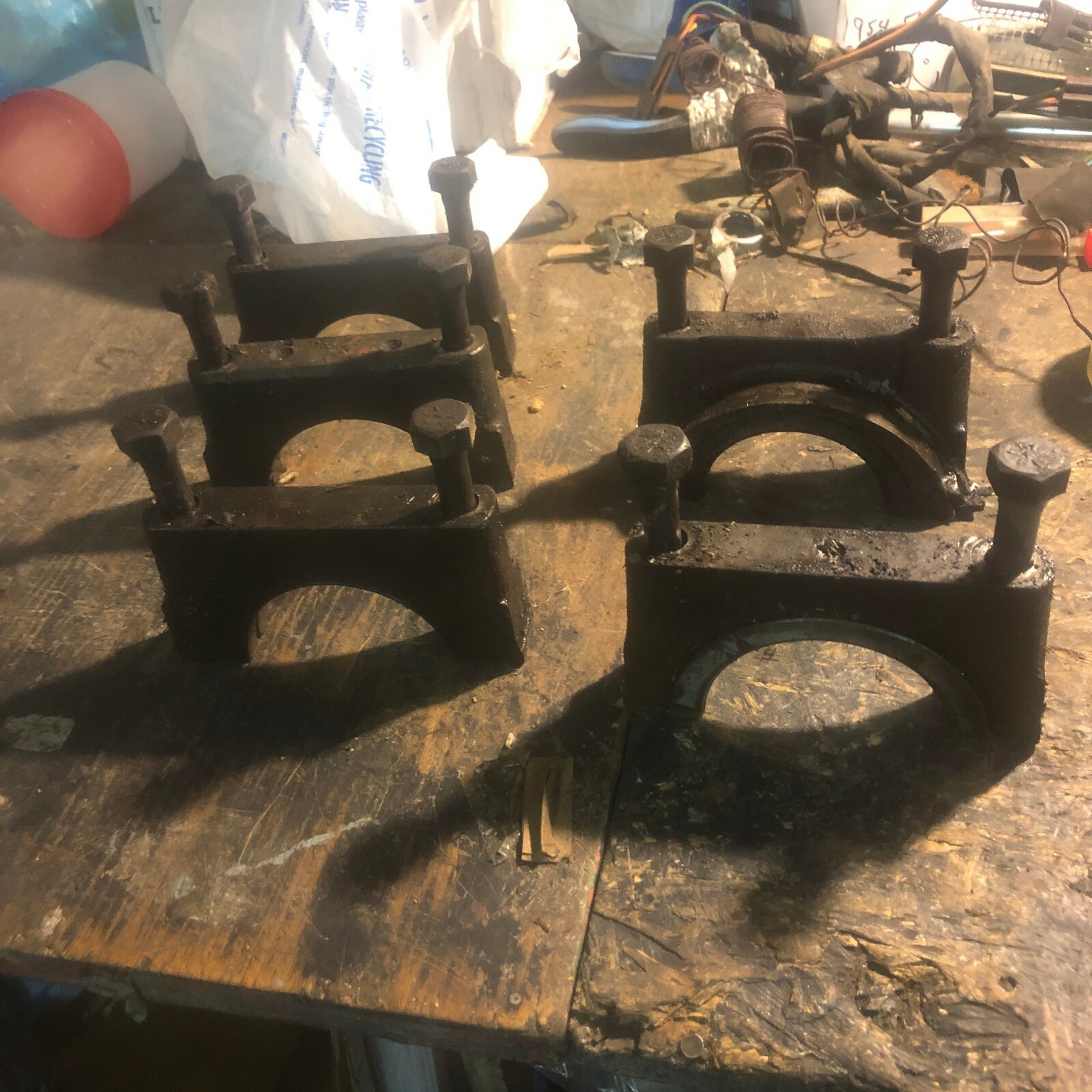 1964 1965 1966 1967 CADILLAC 429 SET 5 MAIN BEARING PILLOW BLOCKS WITH BOLTS REMOVED FROM 1967 CADILLAC 429 MOTOR. COMPARED ALL 5 TO A SET OF 1964 BLOCKS. EXACTLY THE SAME. EXCELLENT CONDITION. JUST NEEDS CLEANING.