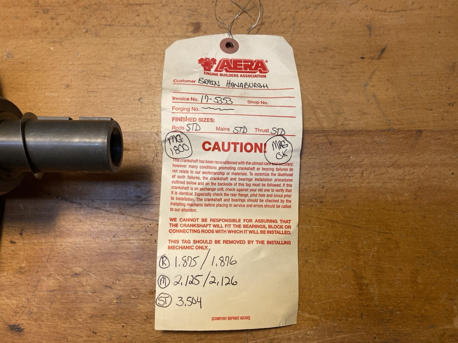 1964-1980 MGB, MGB GT 5 Main Bearing Crankshaft 12H4198 Magnafluxed STD
