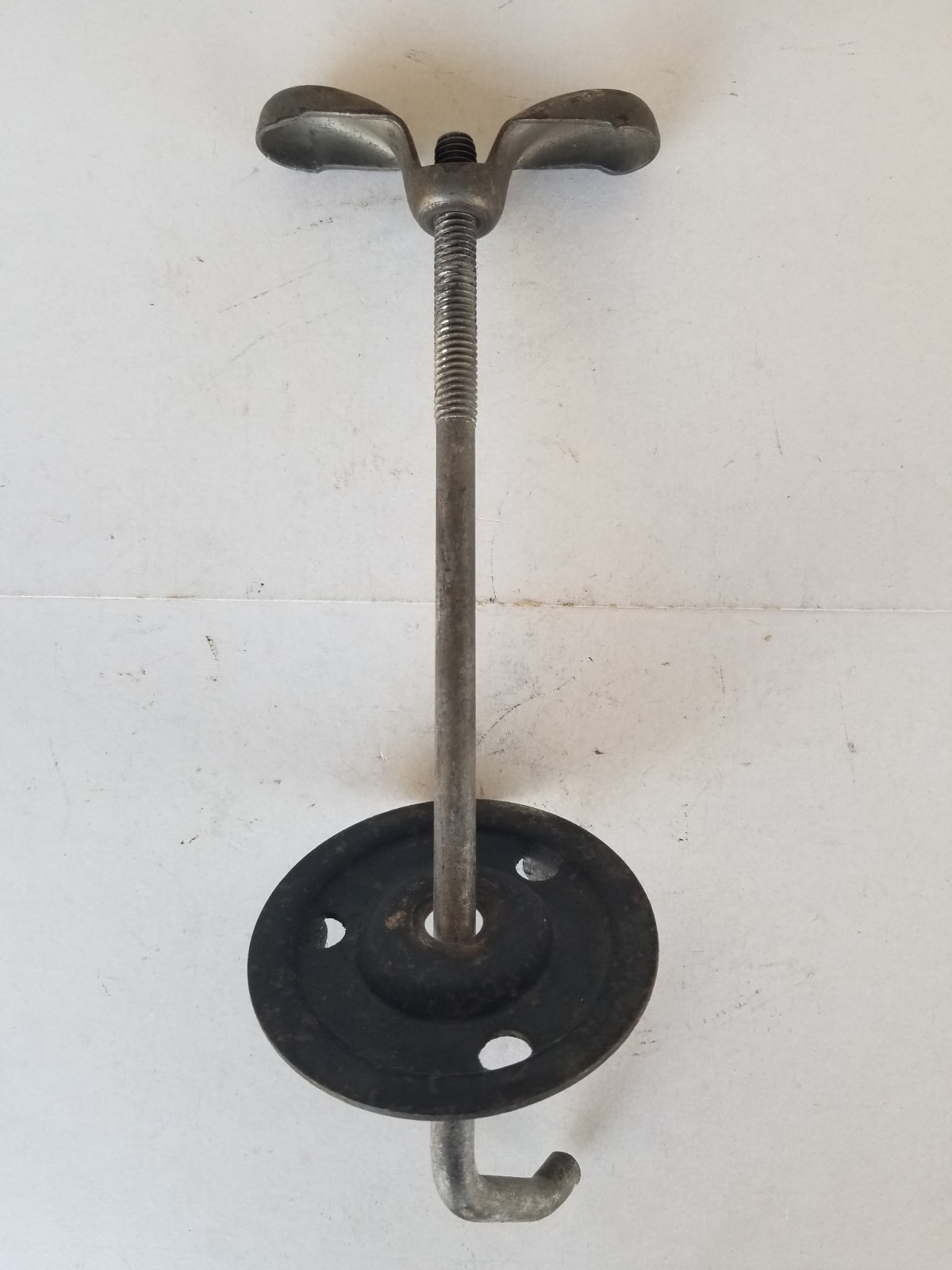 Very hard to find Original Ford Mercury Spare Tire Wheel Mounting Plate, J Hook & Spare Wheel Mounting Nut. This is correct for 67 Mustang GT & Cougar GT as well as 65-66 Mustangs with Styled Steel Wheels. The plate is 3" in diameter versus the much more common 4" for standard steel hubcap wheels (see picture). Picture of larger 4" for reference and not included. The J Hook is 9" in length, and the mounting nut holds on tight to the J Hook. No issues with the threads. Don't miss out. No reproduction junk here.