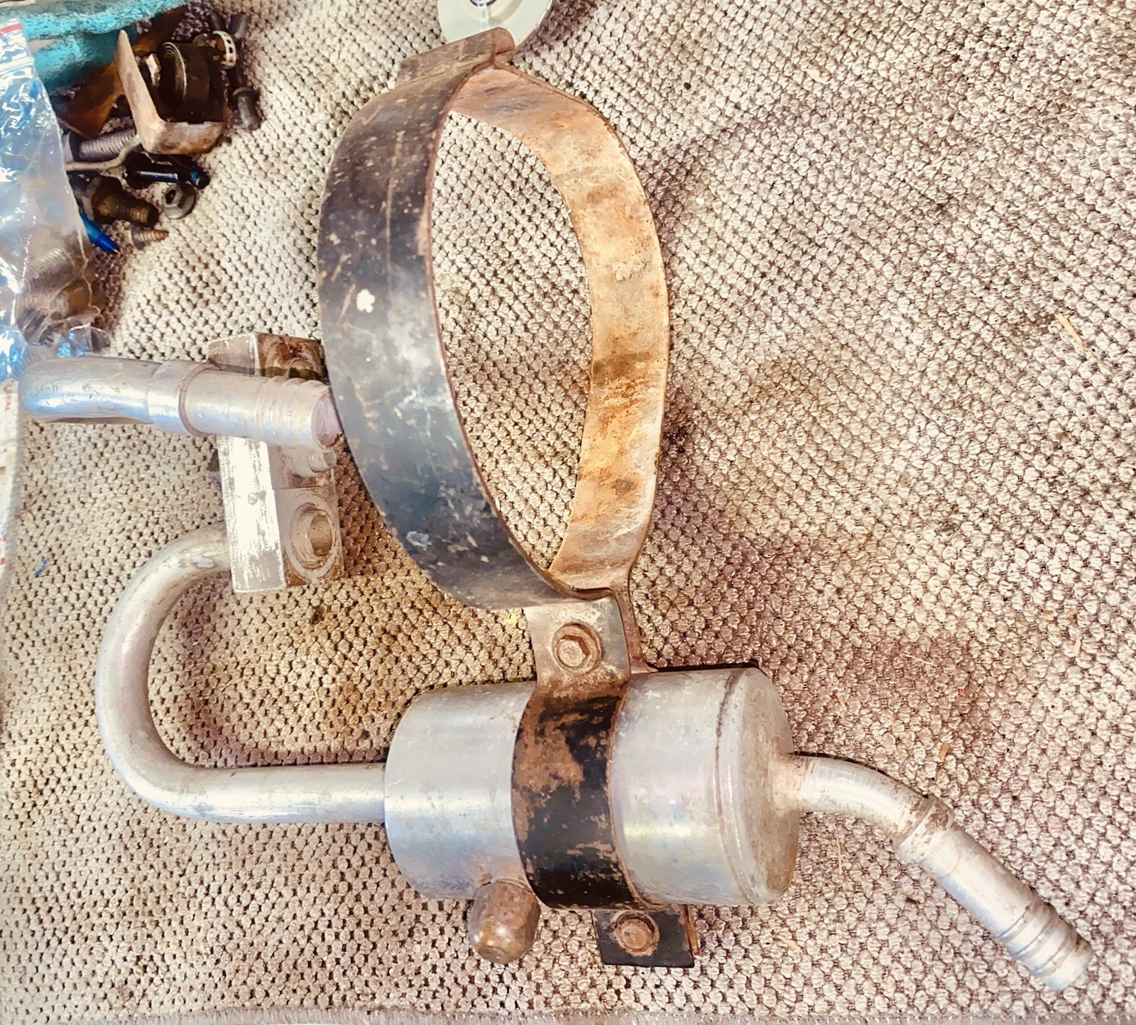 **1965-68 Chevy Chevelle ,Camaro , Impala, Biscayne ,Nova GM Original 396,427 air conditioning manifold muffler with strap bracket ,Chevys with the short water pump Big Blocks**