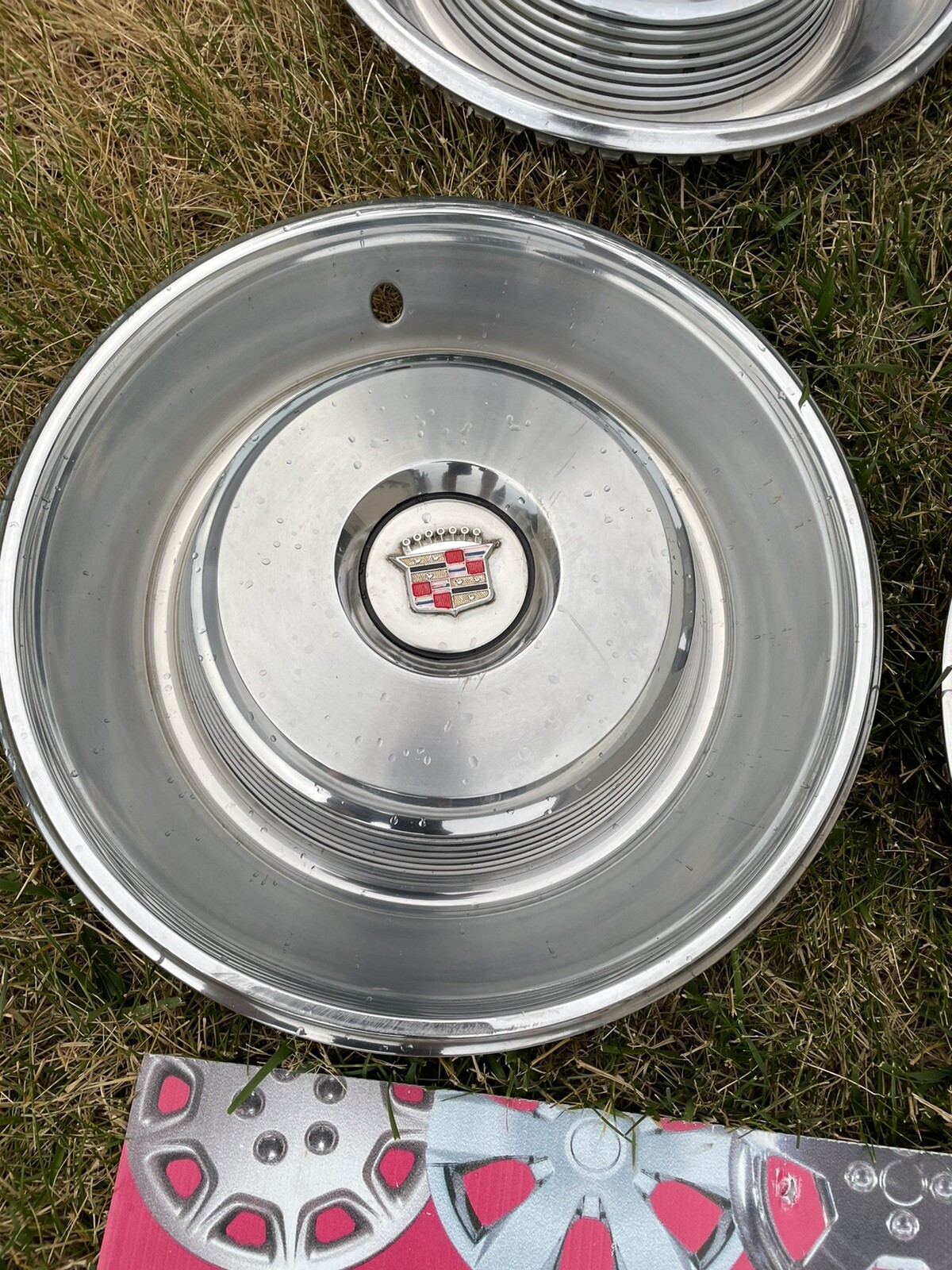 1965 Cadillac Fleetwood, Deville, sedan Deville, Wheel 15” Hubcaps WheelcoversCondition is "Used". Some dents and scratches, Will fit 1950s, 1960s, 1970,s 80,sconvertible and coupe, 4 dr This is one of the best looking stainless full wheelcovers ever made... These will fit any steel 15” wheel rwd or fwd.... These were stored in a garage of one of my older customers, since 1971 Heavy duty clips will mount well... Not many examples of these in this condition, no real dents at all.. No rust on face of caps.. Black centers. One repainted..