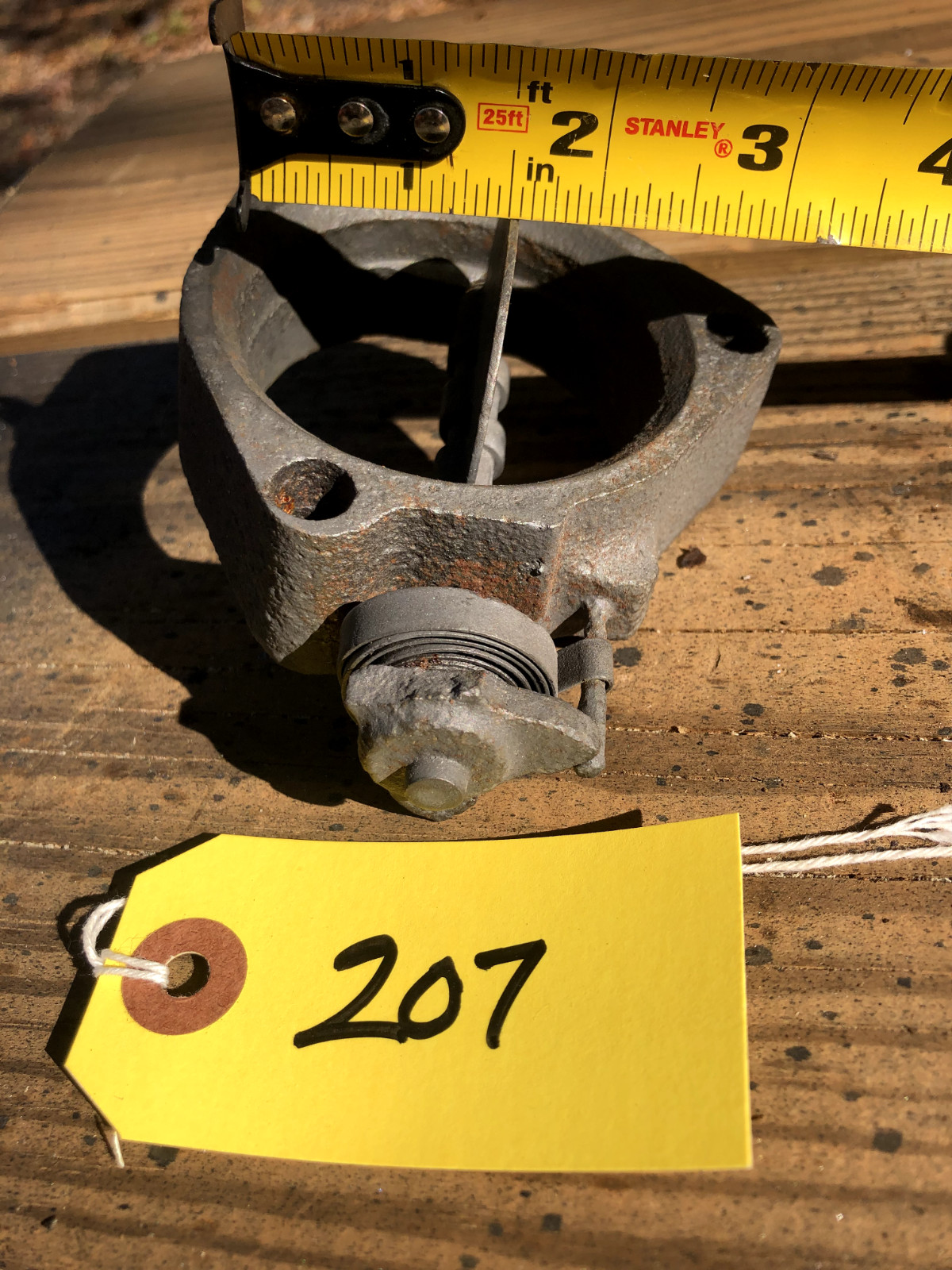Heat riser for the 427 Corvette, 66-69. Counter weight arm has been broken off, and the butterfly flap has been welded open. Appears to be 2 1/2" opening with the bolt holes being 3" apart center to center. Please make sure of your application before buying.