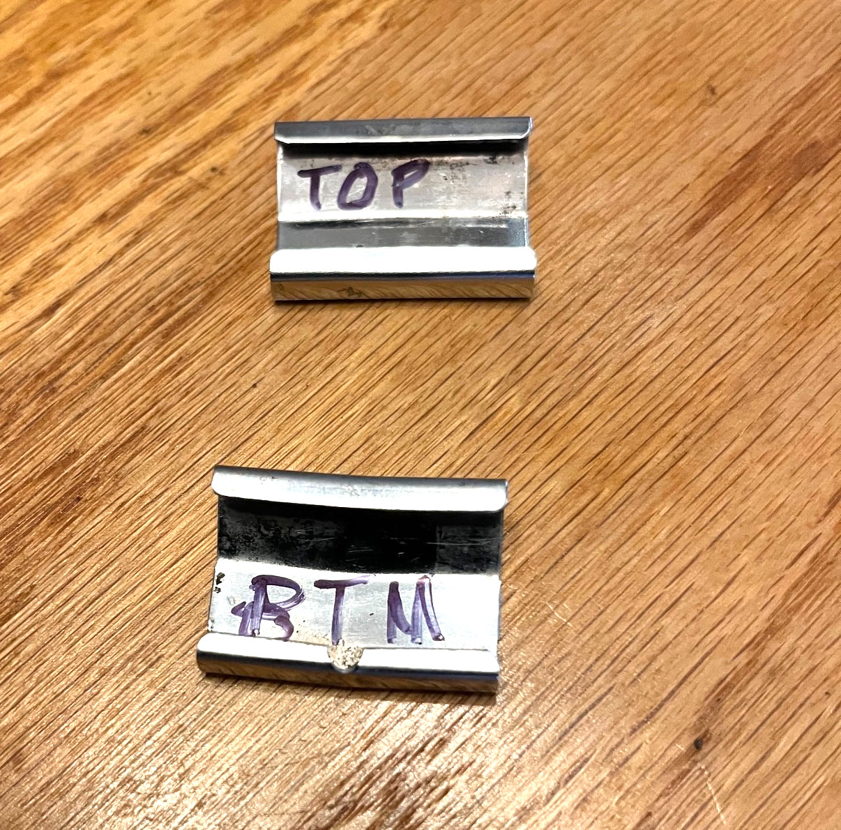 These are used 1969, 1970 or 1971 Rear Window Trim Molding top and bottom connectors for a Lincoln Continental Mark III. These two pieces were removed from a 1970 model. Shipping is to the 48 contiguous states.
