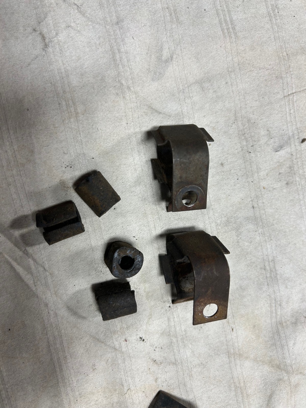 OEM 1969-70 Chevelle Brake Line Brackets, with bushings, I think they go on the frame below master cylinder, small straps have a part # 3952757 I think also used behind master on 70