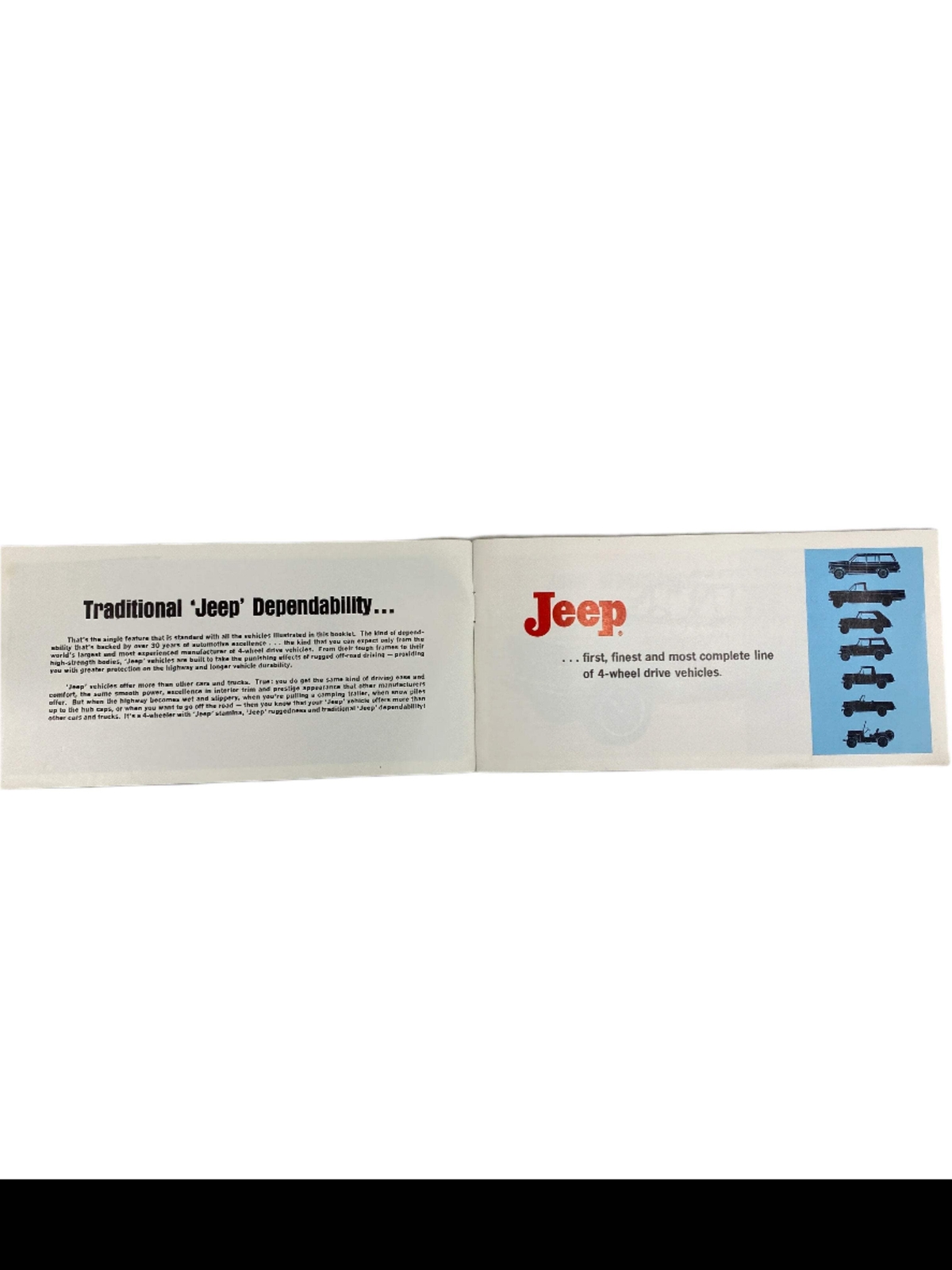 # 1969 Jeep Complete Line Booklet 69-06 Used OEM Original "Jeep" Complete Line Booklet featuring 1969 Kaiser Jeep Corporation Jeep Wagoneer, Jeepster Commando, Gladiator, Universal, and Camper models. Good condition overall with some normal wear. Part number: 69-06 \*Sold as each; quantity one. \*We have multiple of this item in similar condition. The one you receive may not be the exact one pictured. Contact us if you have any questions or would like a picture of the exact one before we send it.  ## 1969 Jeep Complete Line Booklet 69-06 Uséd OEM Original "Jeep" Complete Line Booklet featuring 1969 Kaiser Jeep Corporation Jeep Wagoneer, Jeepster Commando, Gladiator, Universal, and Camper models. Good condition overall with some normal wear. Part number: 69-06 \*Sold as each; quantity one. \*We have multiple of this item in similar condition. The one you receive may not be the exact one pictured. Contact us if you have any questions or would like a picture of the exact one before we send it. Pick up procedure is as follows: 1. We accept payment via U.S. PayPal accounts and all Major Credit Cards, Debit Cards & Google Pay. We are legally required to collect sales tax in those states and localities where we maintain a physical presence (nexus). The applicable amount of sales tax charged to an order will be calculated based on the shipment destination's state and local sales tax laws. Contact To contact our Customer Service Team, simply click the button here and our Customer Service team will be happy to assist. We accept payment via U.S. PayPal accounts and all Major Credit Cards, Debit Cards & Google Pay. We are legally required to collect sales tax in those states and localities where we maintain a physical presence (nexus). The applicable amount of sales tax charged to an order will be calculated based on the shipment destination's state and local sales tax laws.
