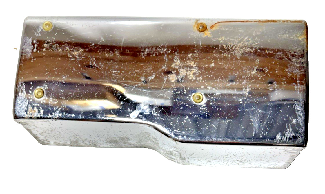 - 1970-1974 Chevy Corvette C3 Top Ignition Distributor Shield - OEM Part 3986344 - Chrome - Good preowned condition with light surface rust and scratches