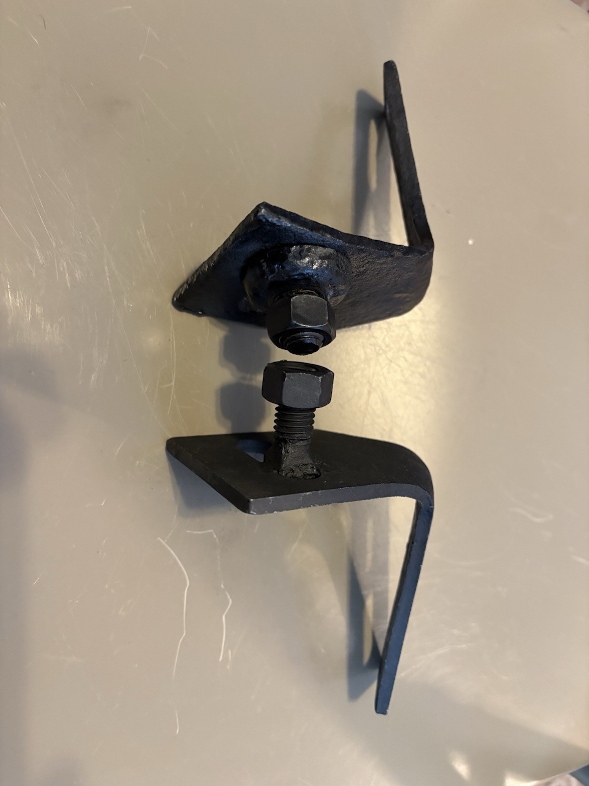 Original heavy duty thick steel tailpipe frame brackets for rear tips. GM original one has more pots one has no pits. Pontiac GTO 1970 and 1971 only