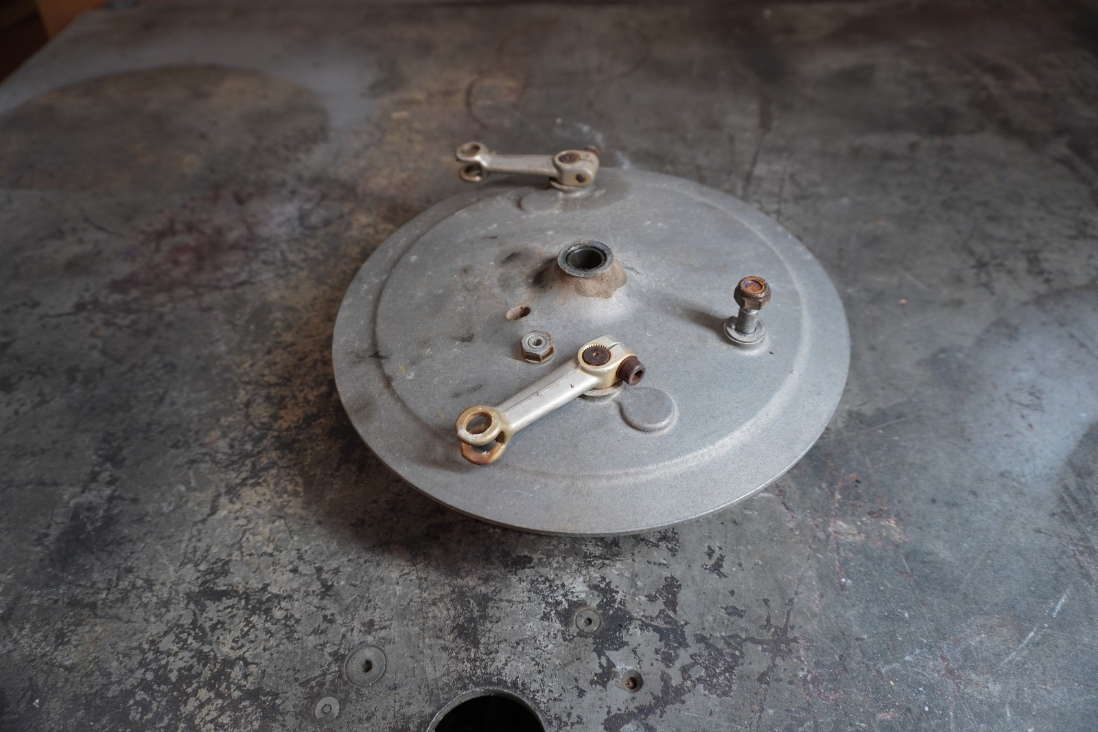 1970 BMW R75/5 front brake drum OEM used, with brake shoes and hardware.
