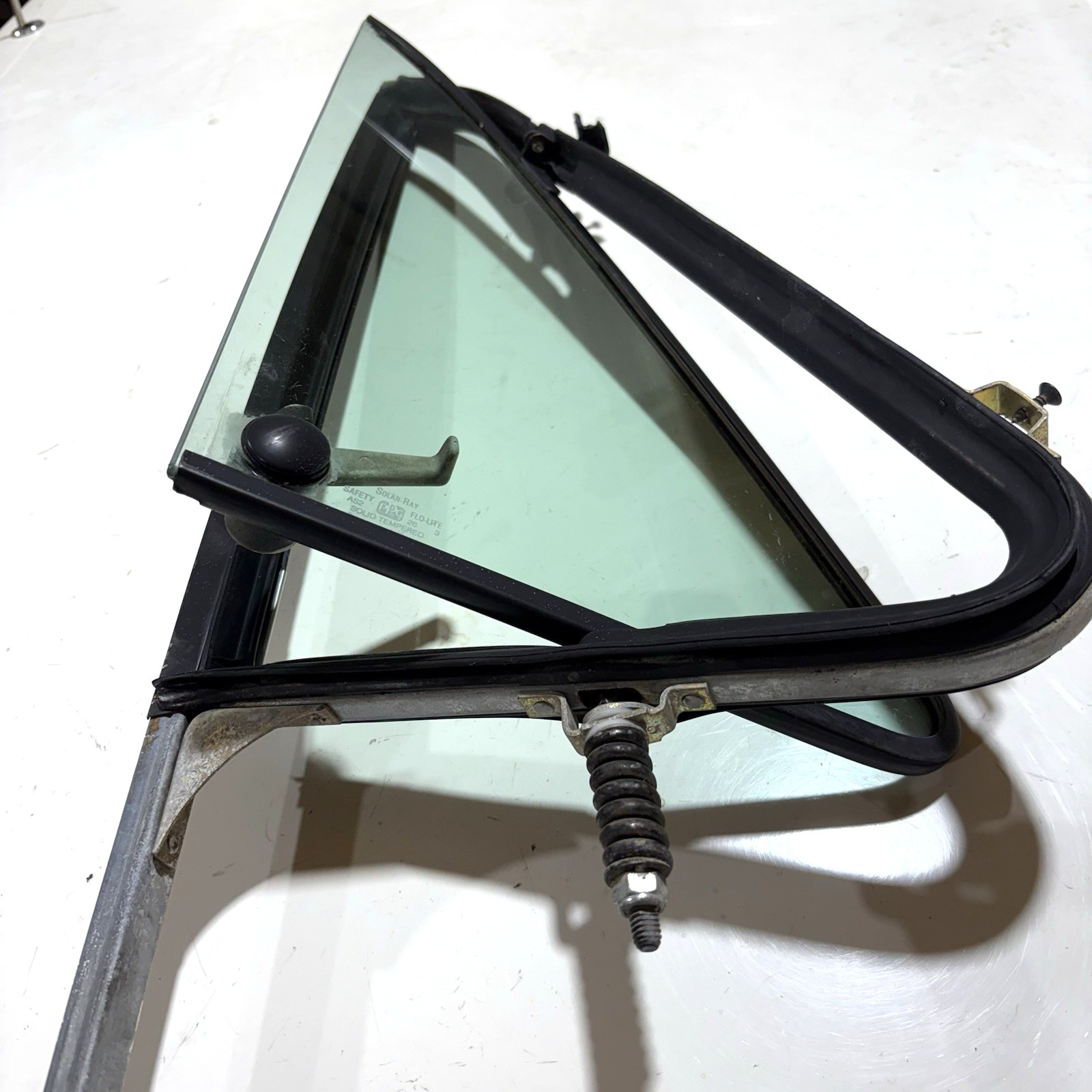 Original, lightly used RH (passenger-side) vent window assembly with latch, mounting frame, tempered safety glass, tensioning spring and factory fasteners. Window (Solar Ray) fits Chevrolet G-Series and GMC Vandura (1971 1972 1973 1974 1975 1976 1977 1978 1979 1980 1981 1982 1983 1984 1985 1986 1987 1988 1989 1990 1991 1992 1993 1994 1995). Assembly shows minor surface blemishes and no damage. Sourced from a 1990 Chevrolet G30 Van. Free shipping.