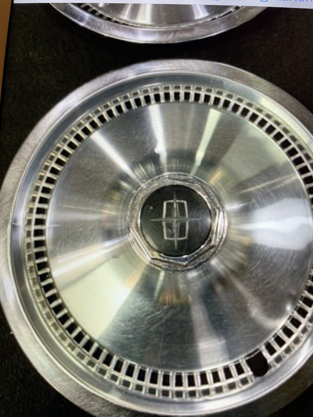 1975-81 Lincoln continental 4dr 2dr Stainless Full Hubcaps Nice no real large dents at all ,were removed from a car in 1977 stored since. Used Rare. Condition is "Used". These are very rare to find anywhere!!!! stainless with nice paint ,some minor flaws ,some dents and scratches in edges, middle emblem has a few flaws some pitting on diecast hex . Paint is good bright, stainless, these fit the 5 lug 15” wheels. All 4 are nice with a couple. Minor mounting marks on the caps some curb rub. these are a # 6 out of 10 original Oem caps... This is the last set of these I own at the moment... Look at pics.