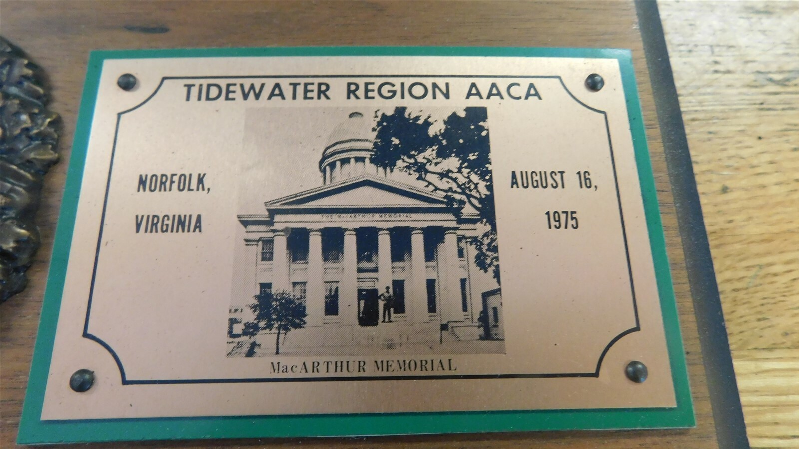 1975 TIDEWATER REGION AACA CAR SHOW VIRGINIA THIRD PLACE AACA TROPHY PLAQUE RARE