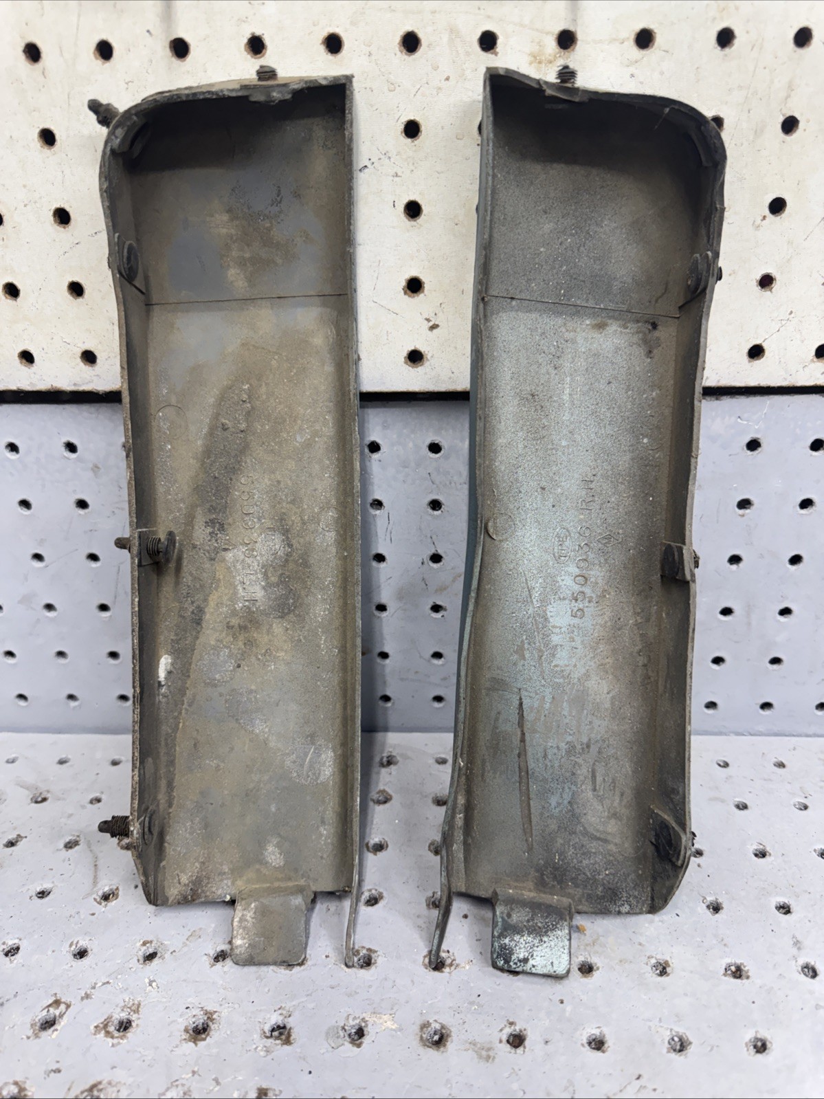 This is a set of front bumper side fillers from a 1977 Oldsmobile Cutlass. These are not in bad shape for the age, but the one does have some wrinkle marks in it. Be sure to check out all my listings, thanks.