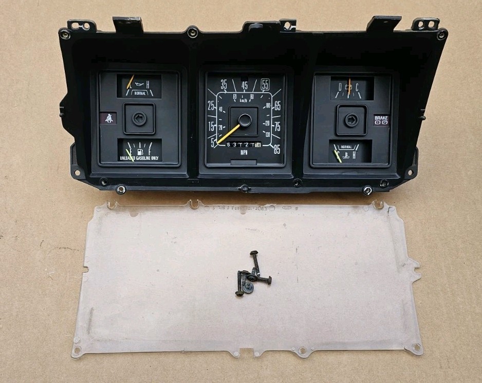 Note: You MUST match your rear circuit board part number for proper compatibility. If your truck has idiot lights not full gauges this cluster will not work. For sale is an original 1976 1977 1978 1979 F series truck and bronco instrument gauge cluster with black gauges/ black bezel. Gauges are all clean with no fade. The rear housing is solid and is not chalking. The lens is included and shows normal wear. The front housing/bezel has both main mounting points intact. This cluster has the red 1976 style circuit board part number d6tf-10c956. You must have this exact part number on your current circuit board for the unit to work. If your circuit board is green this unit will not work. If you have any questions or need more pictures please let me know. Thank you Free shipping applies only to the lower 48 states.
